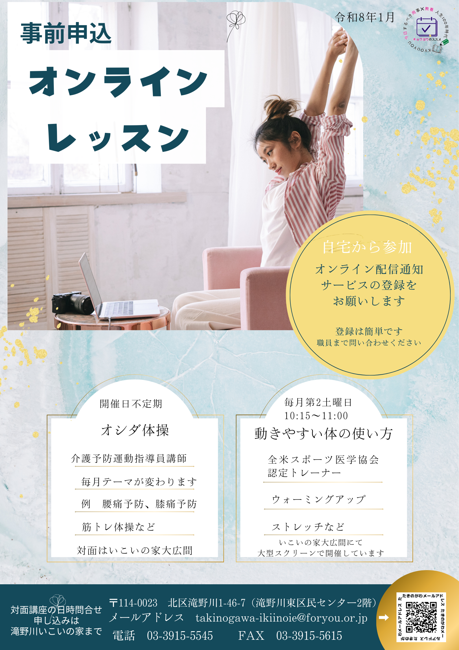 【オンライン配信登録のご案内】ご自宅で体操講座に参加できます!
