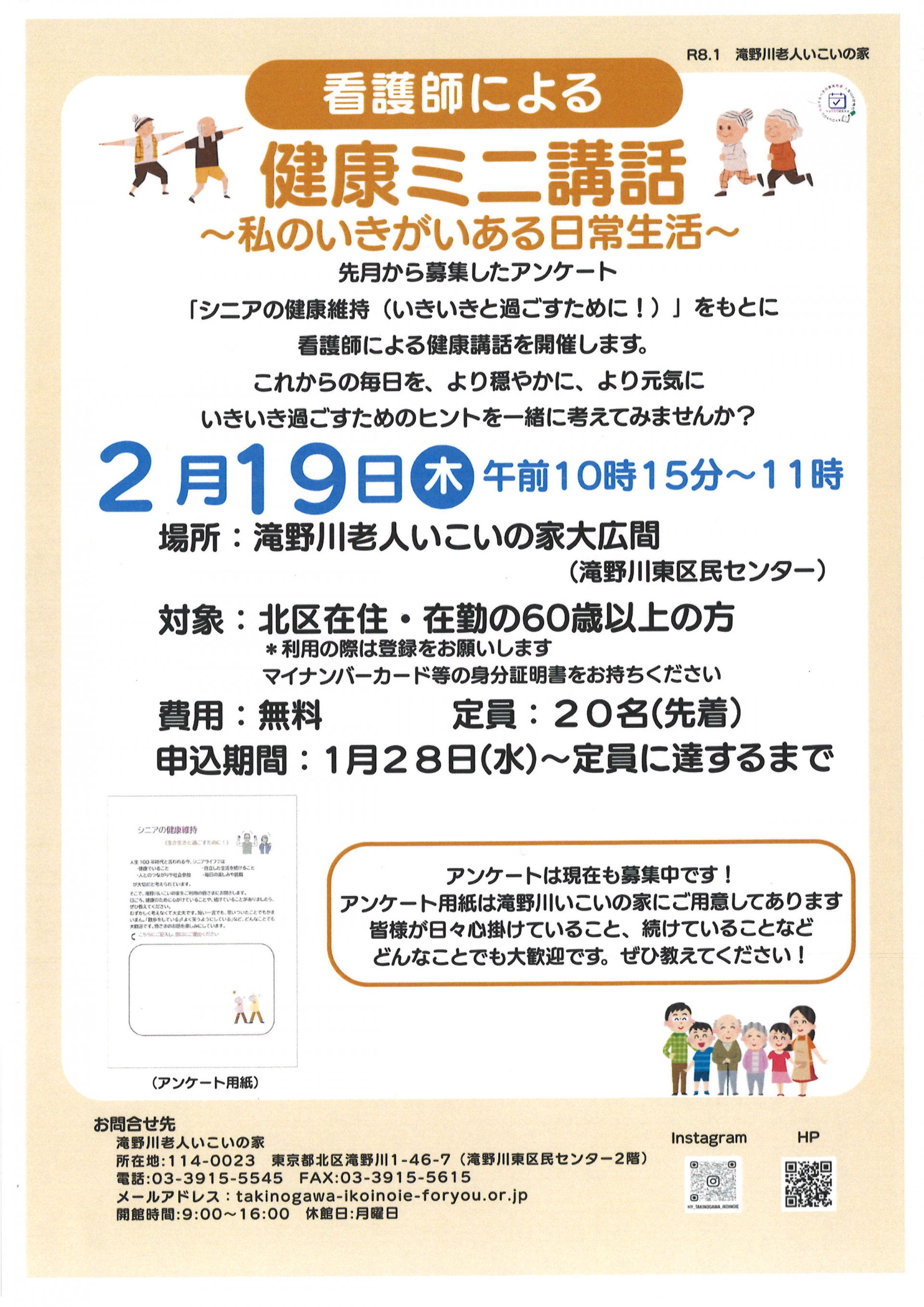 アンケート用紙は滝野川いこいの家にご用意しておりますので、ぜひご記入いただけましたら嬉しいです!