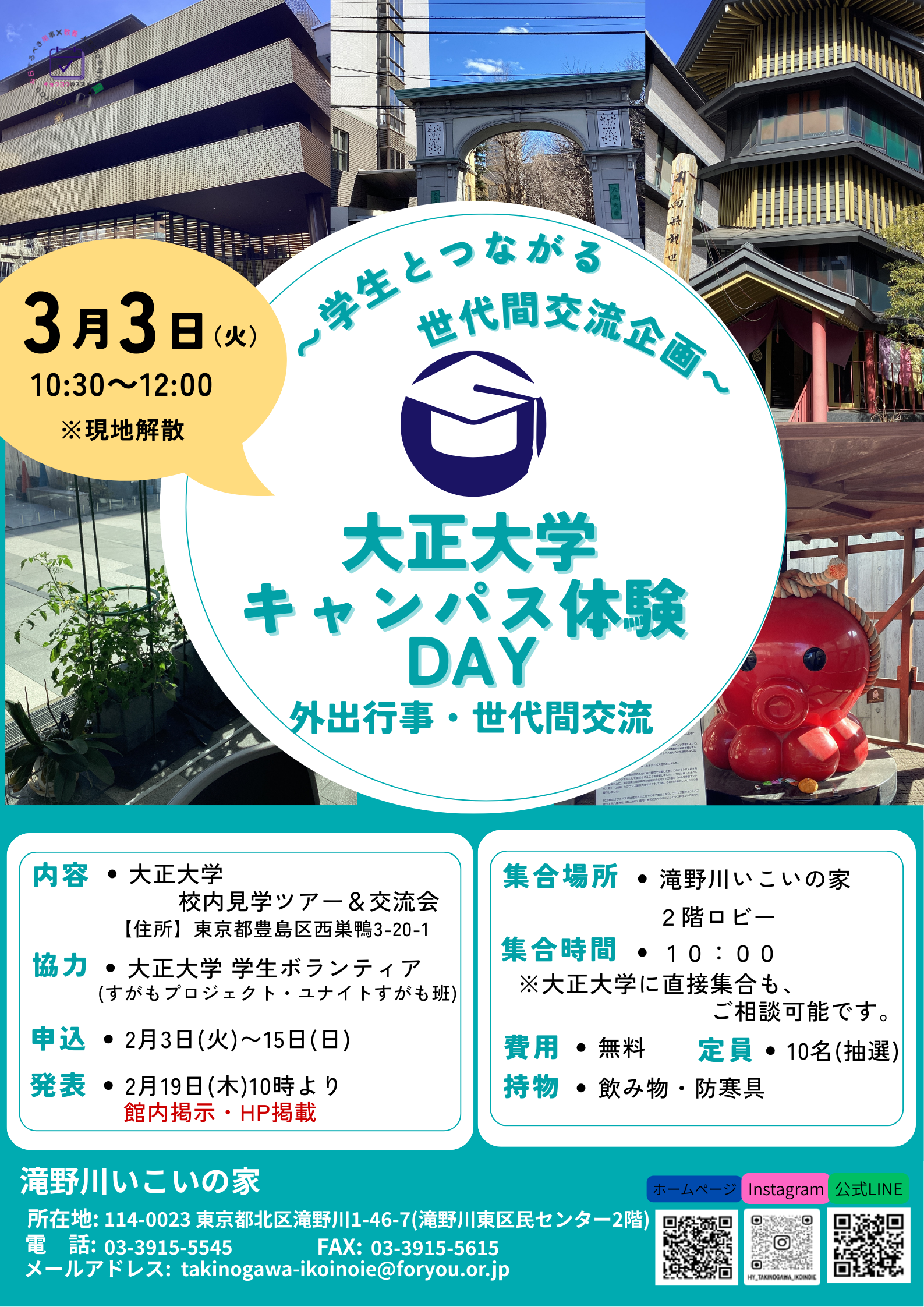 【参加者募集!】大正大学キャンパス体験DAY~外出行事・世代間交流~