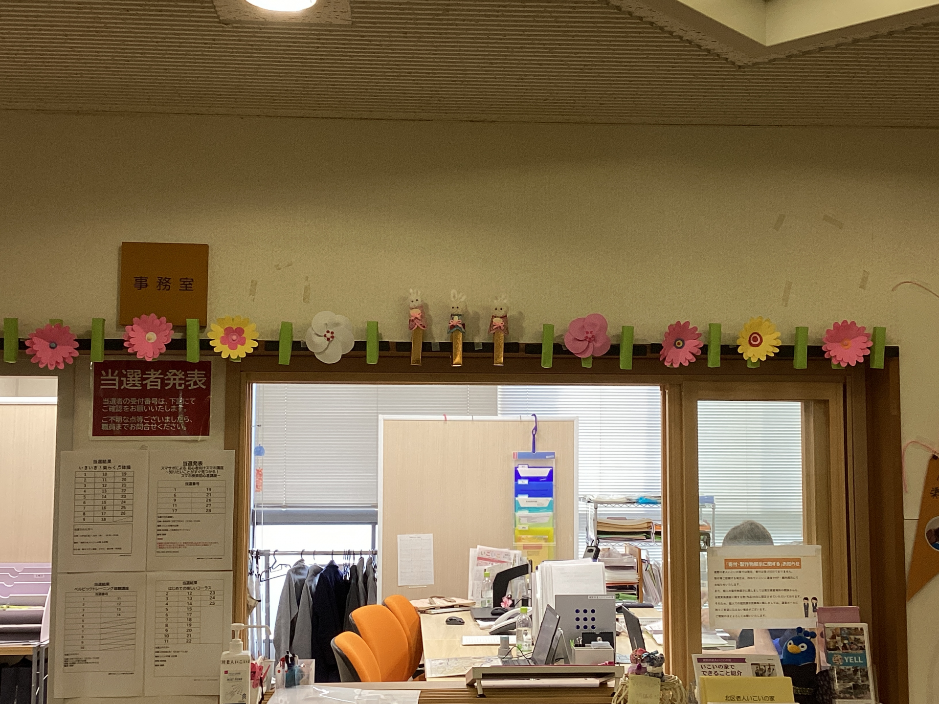 2月5日(木)の装飾ボランティアは春らしく模様替え致しました🌺