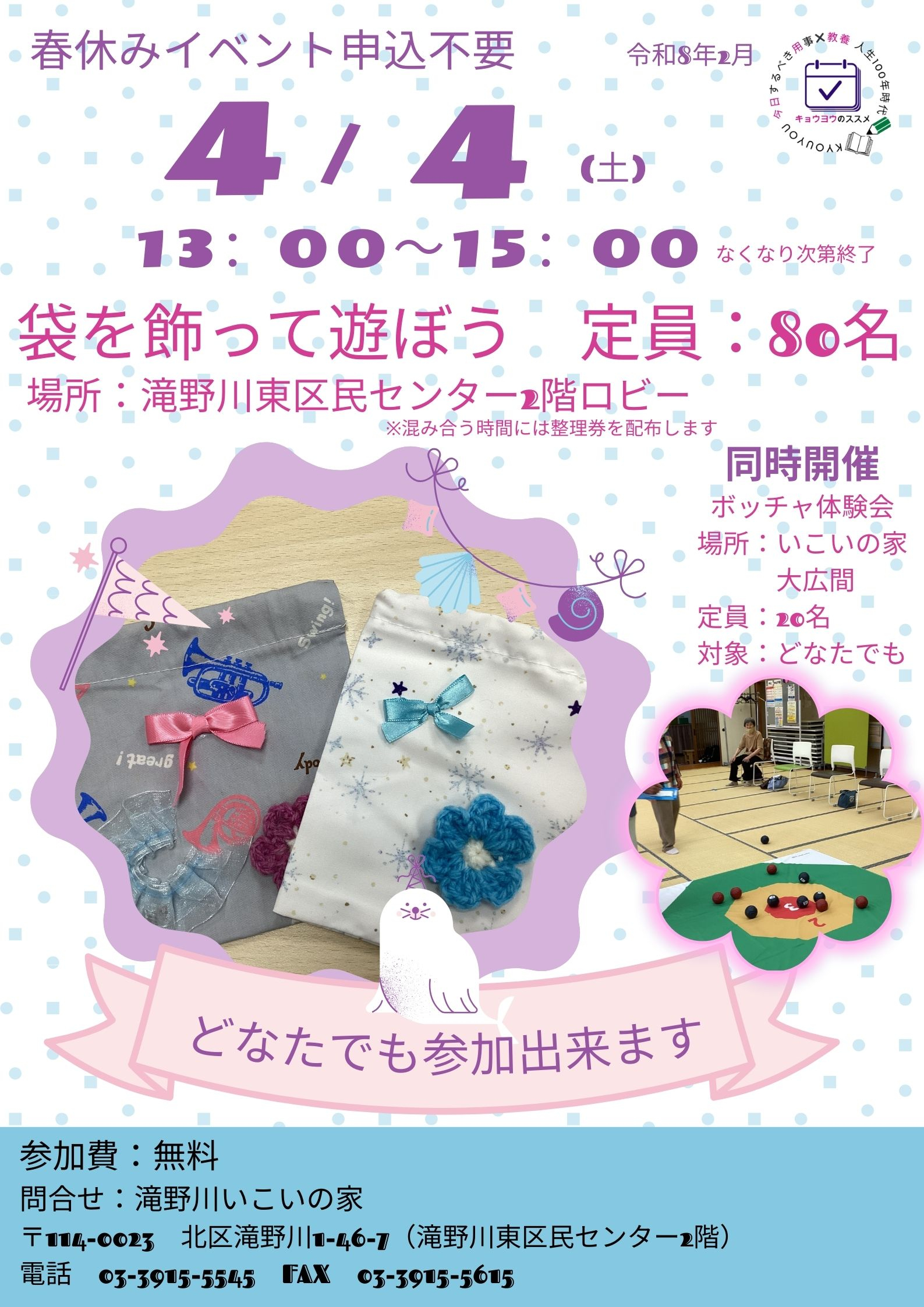 【予告】春休みイベント 袋を飾って遊ぼう♪