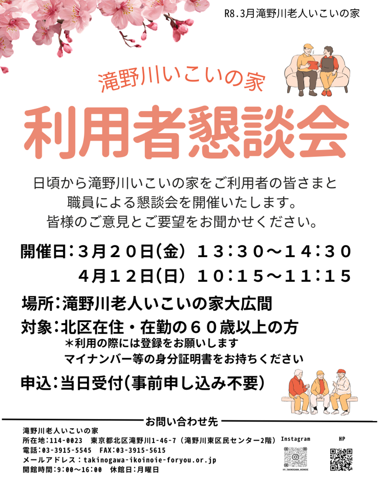 利用者懇談会を3月20日(金)・4月12日(日)に開催いたします