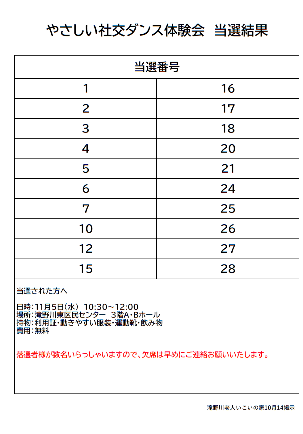 【当選発表】やさしい社交ダンス体験会(11月5日(水)開催)