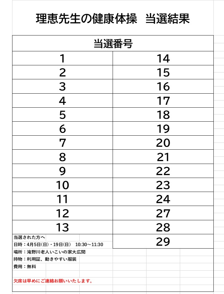 【当選発表】理恵先生の健康体操(4月)