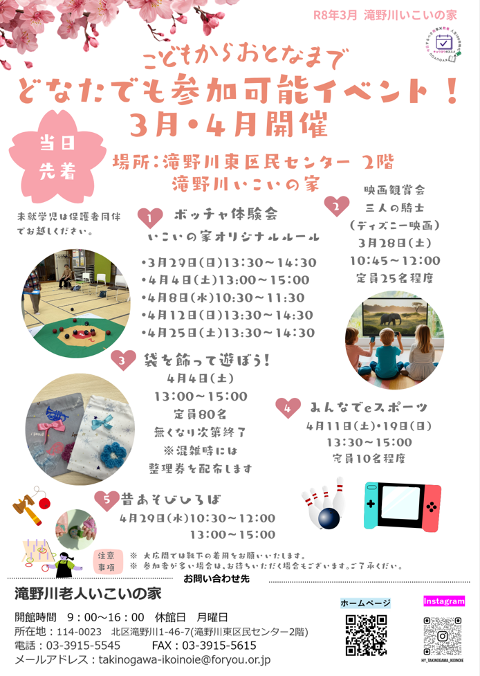 【お知らせ】子ども~おとなまで参加できるイベント!(3月・4月)