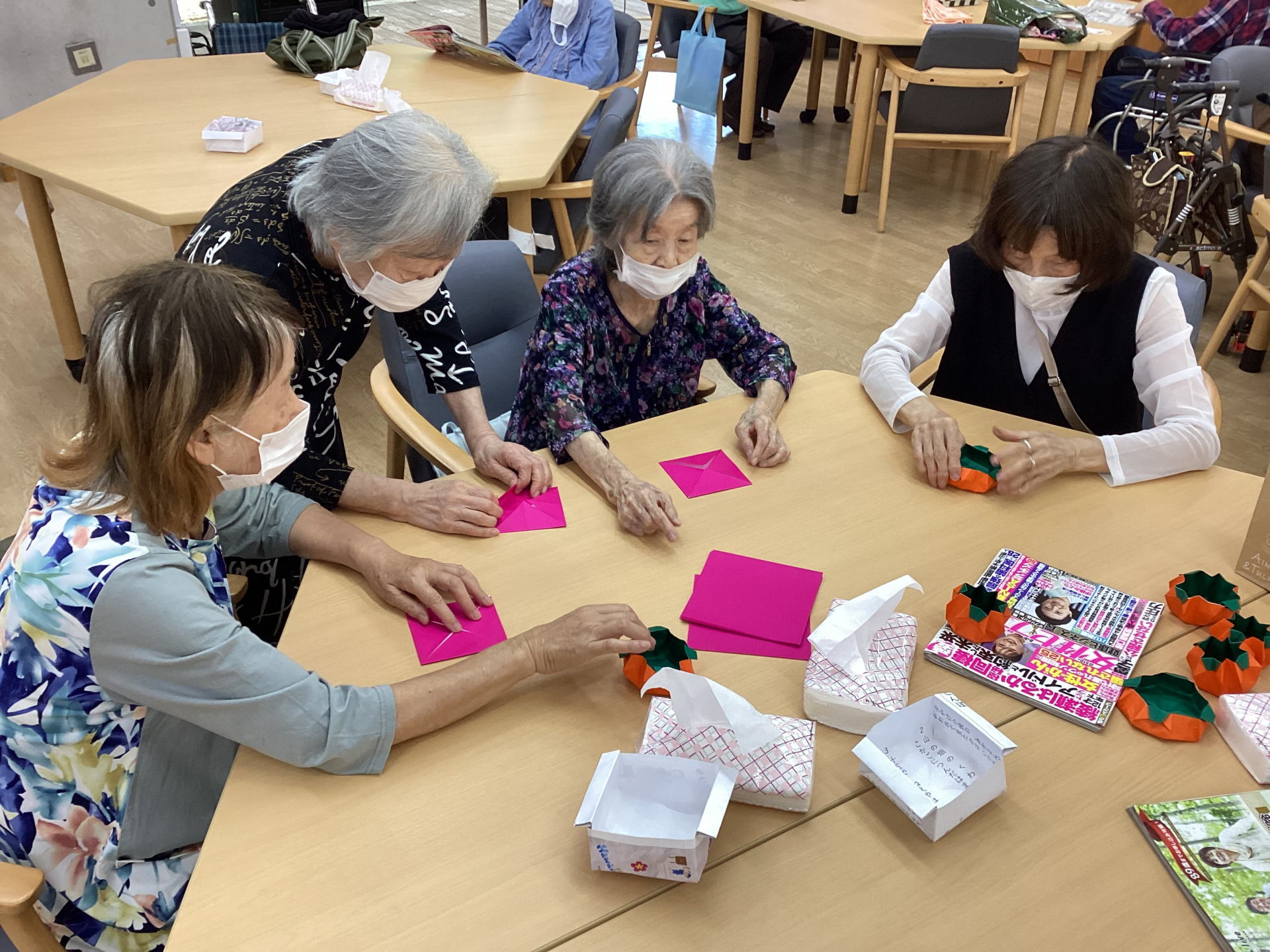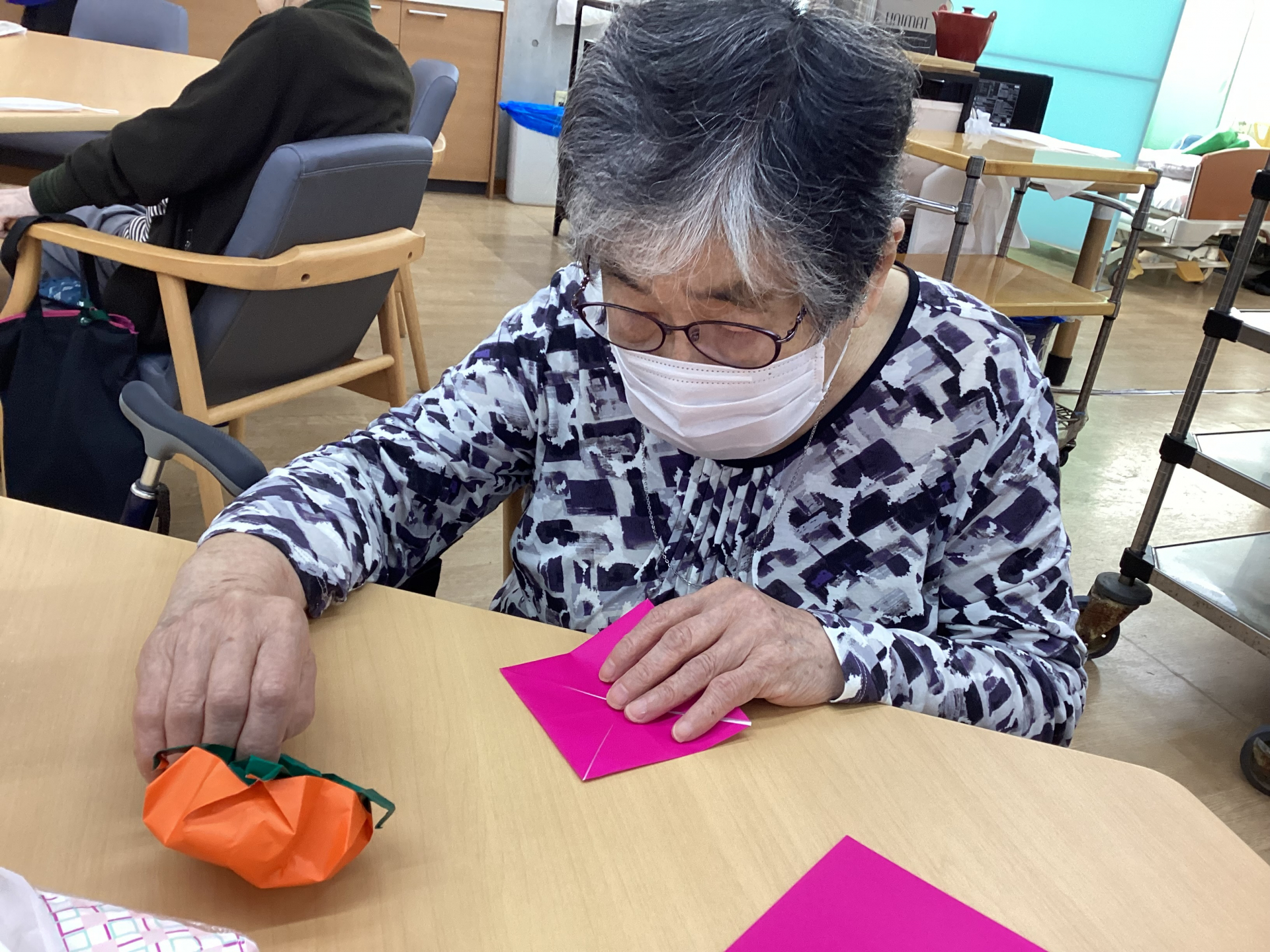 夕方のフロアでは何やら折り紙を折っているご利用者様たちの姿が。