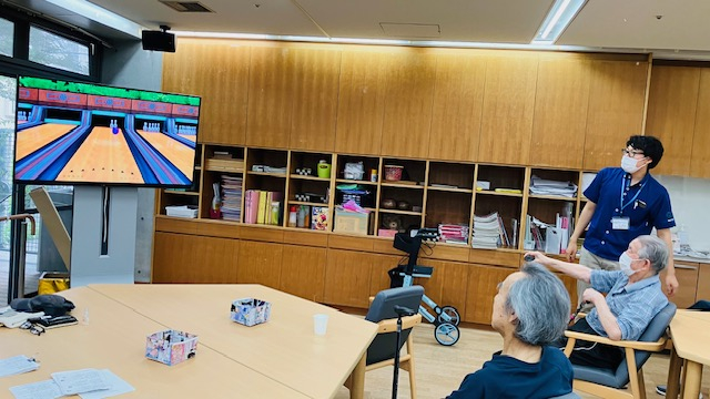 若い職員が皆様にレクチャーし本当のボーリングやゴルフをしている感じでした。