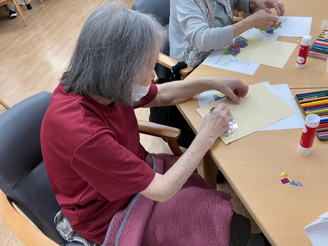 本日の午後レクは手工芸!「あじさい飾り作り」でした!