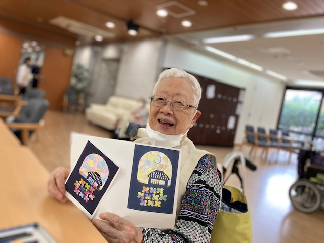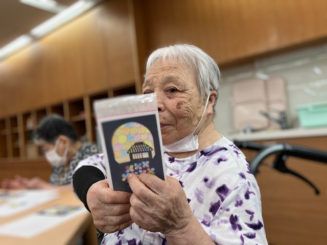 はがきにちぎり紙を綺麗に敷き詰め夏の風物詩の