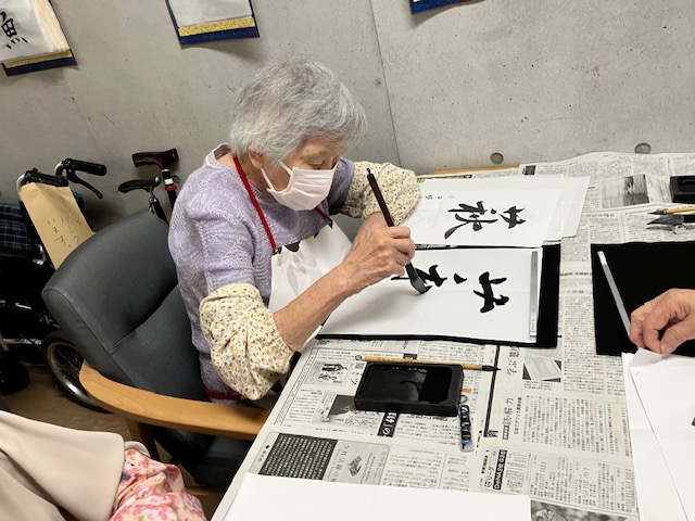 まずは「橋本先生書道」です。いつもは水曜日に来て頂いているのですが