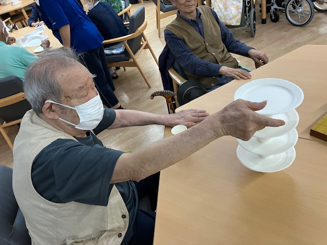 本日の午後レクは「紙皿ぐらぐらゲーム」でした!