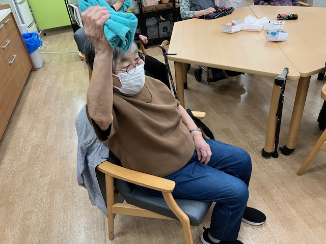 今日のブログは添田職員による「タオル体操」を紹介します!