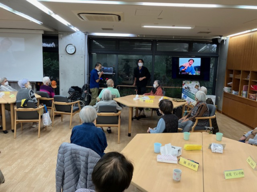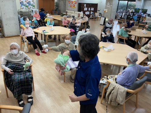 皆さんで、思い思いのデザインに色とりどりのお花紙
