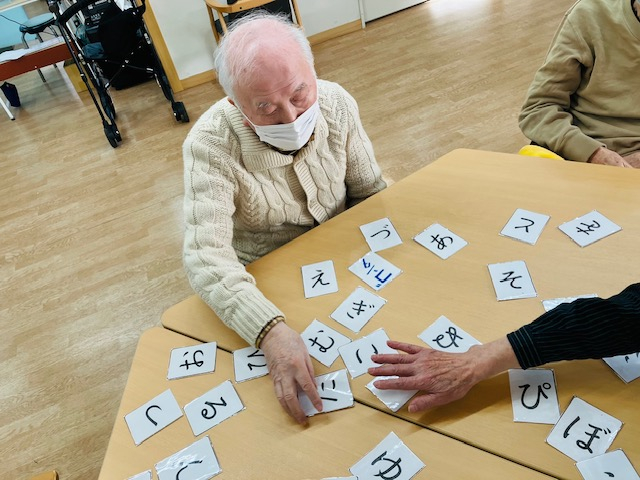 本日の午後レクはアルディン職員による「言葉探しゲーム」を行いました。