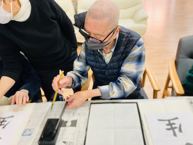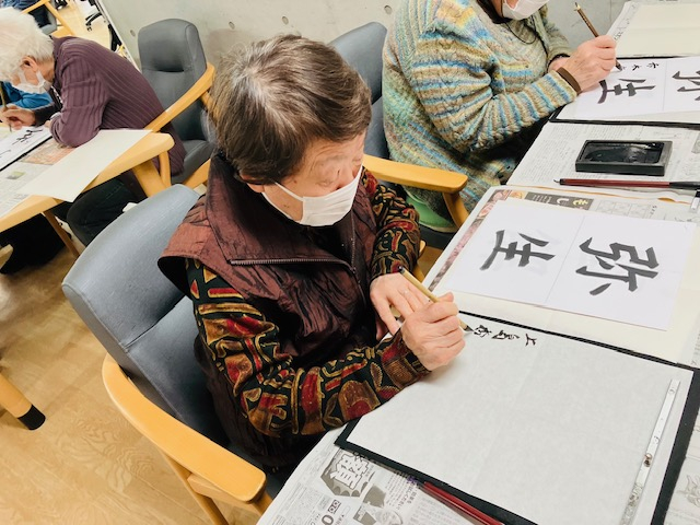 皆さま、お手本をじっと見つめ、一筆一筆を