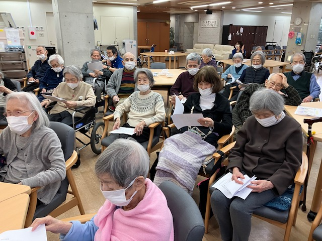 続いては歌の時間です。懐かしの歌謡曲をイントロクイズをしながら、みなさんで一緒に歌います。