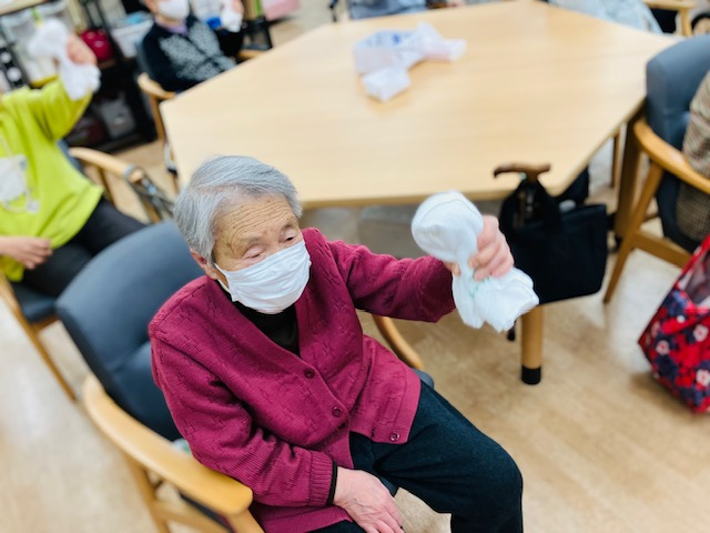 タオルを投げて手を叩いてキャッチ!思わず皆さん「わっ」と笑ってキャッチ(≧▽≦)