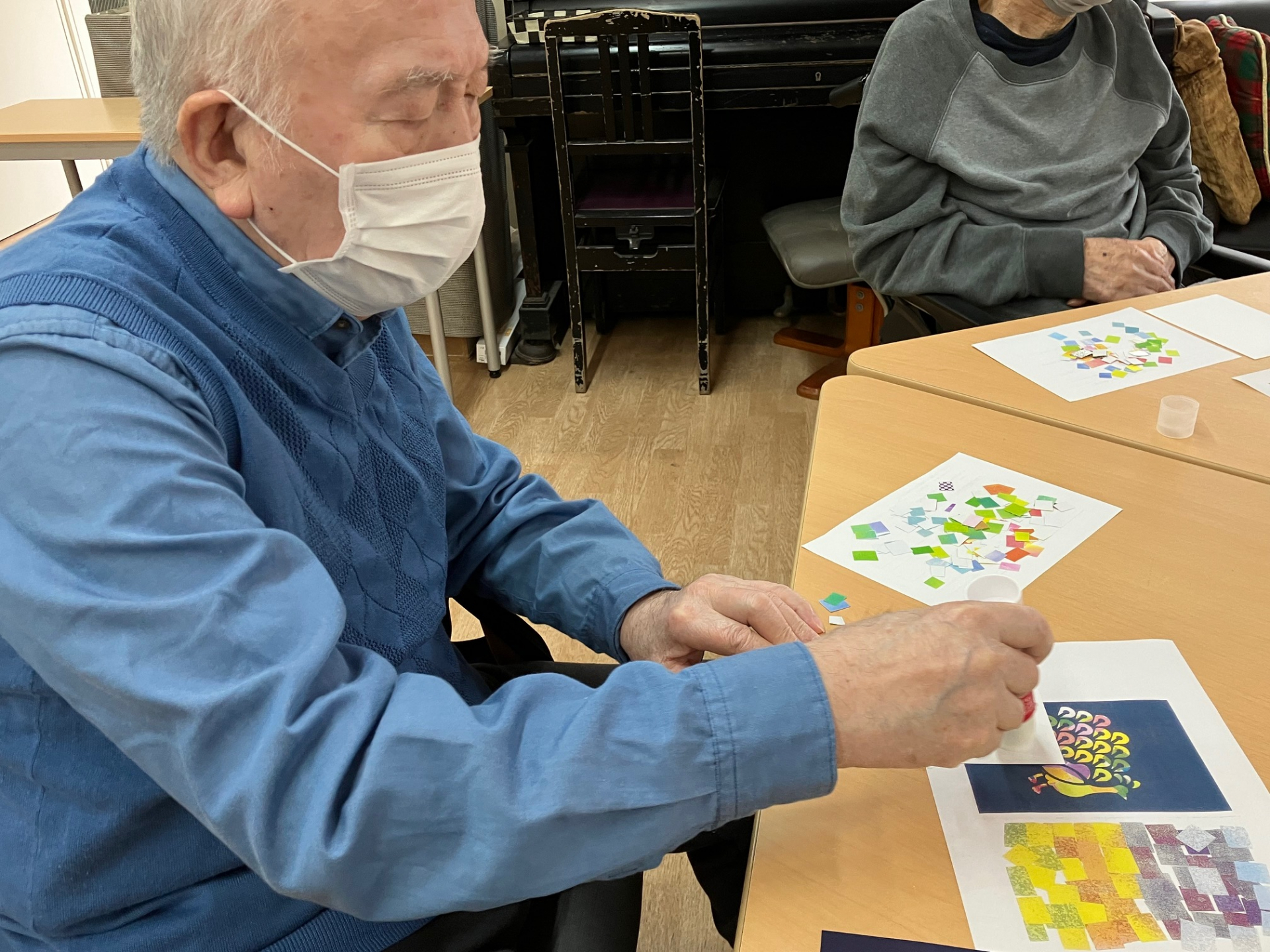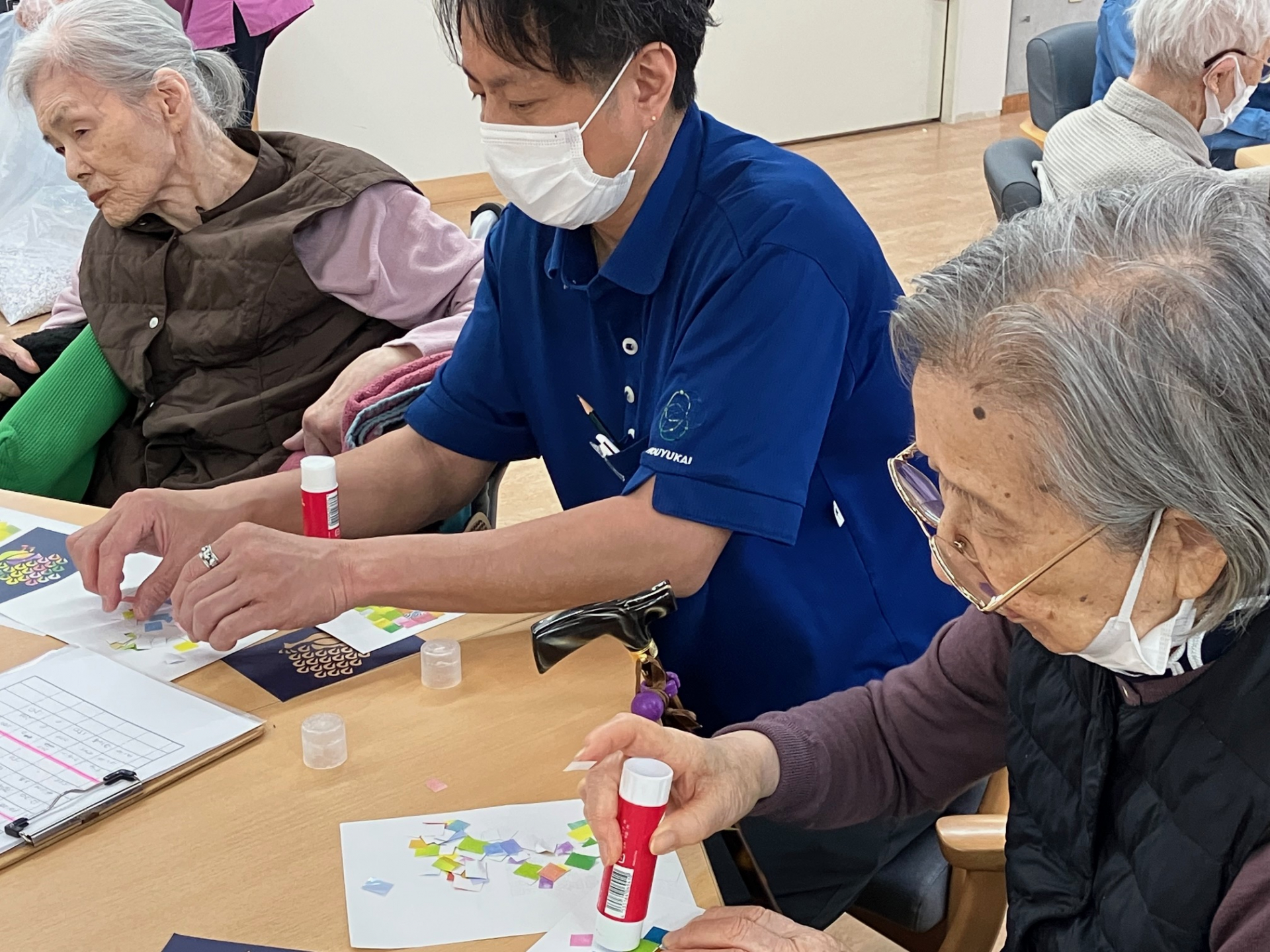 本日のレクリエーションは、みんなで楽しく「紙風景作り」を行いました。