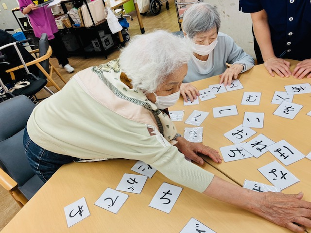 ひらがなカードを使って、テーマに沿った言葉を作るゲームを行いました!