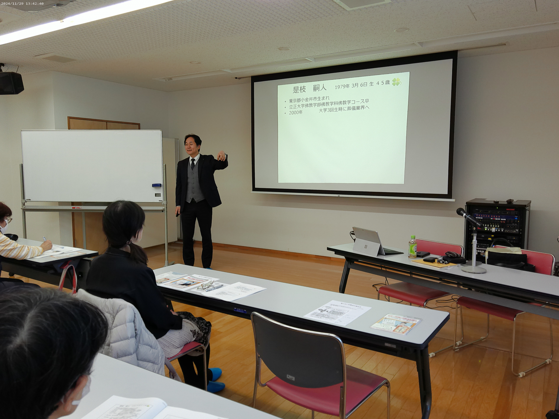 一級葬祭ディレクターの是枝嗣人(つぐと)氏を講師に迎えて2回目の講座です。