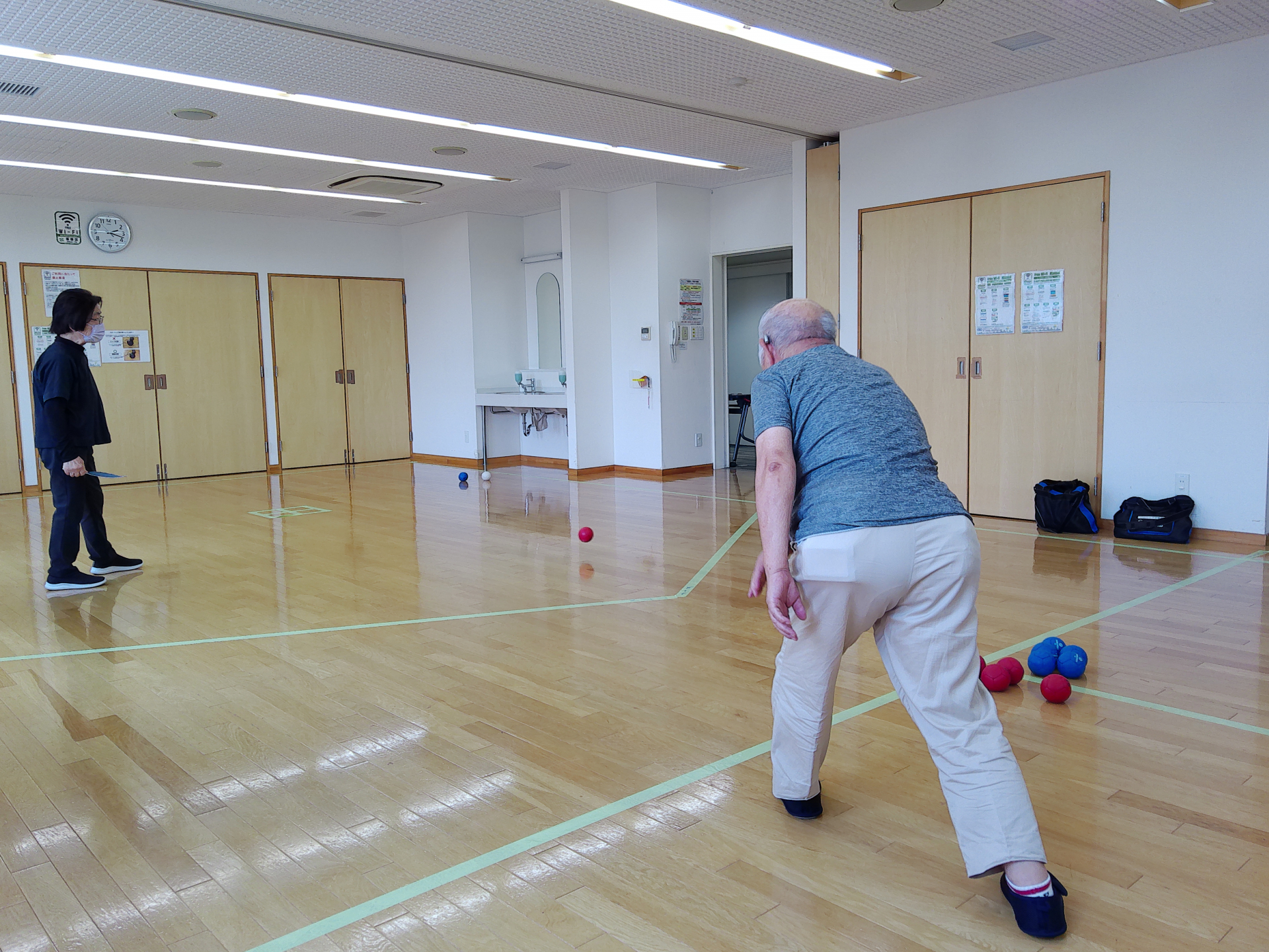 最初は、ボールが柔らかいので、狙ったところに中々いきませんでしたが何回か練習するとコツがわかるようになってきました。