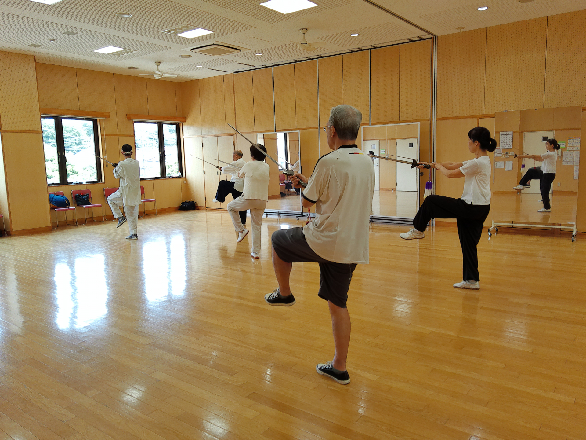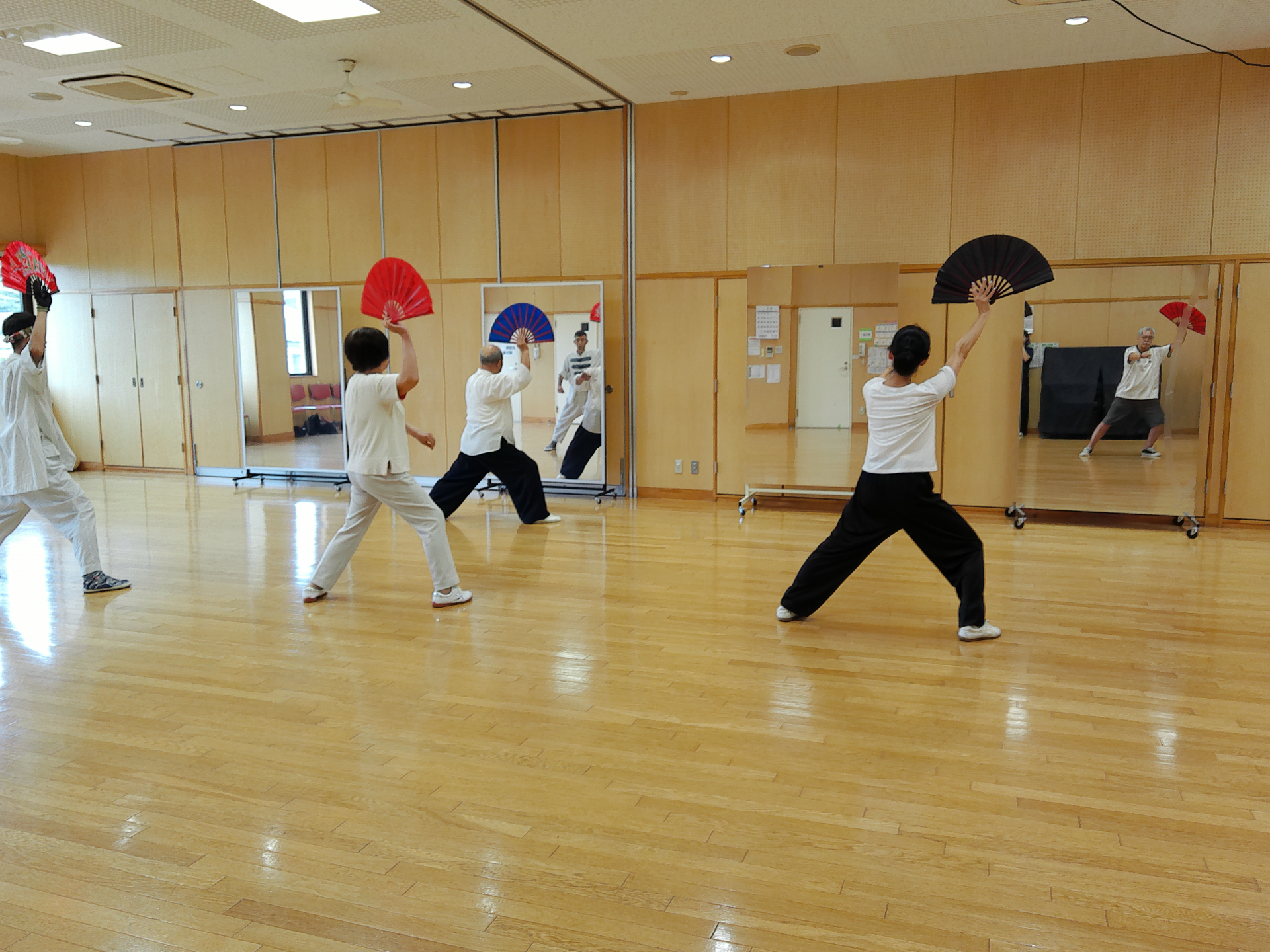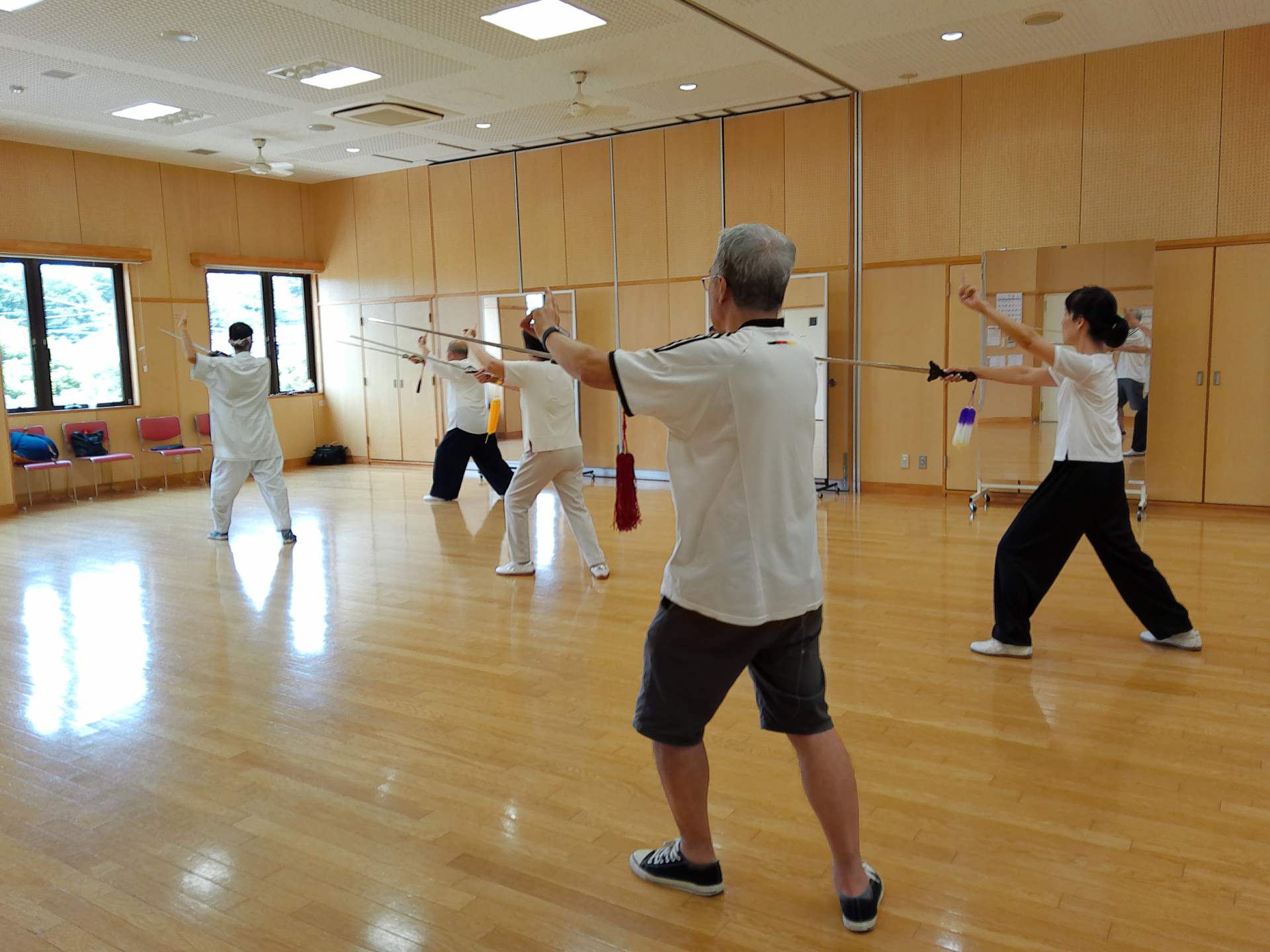 前半では、24式と48式を行います。後半では、剣(32式と42式)と功夫扇を行います。