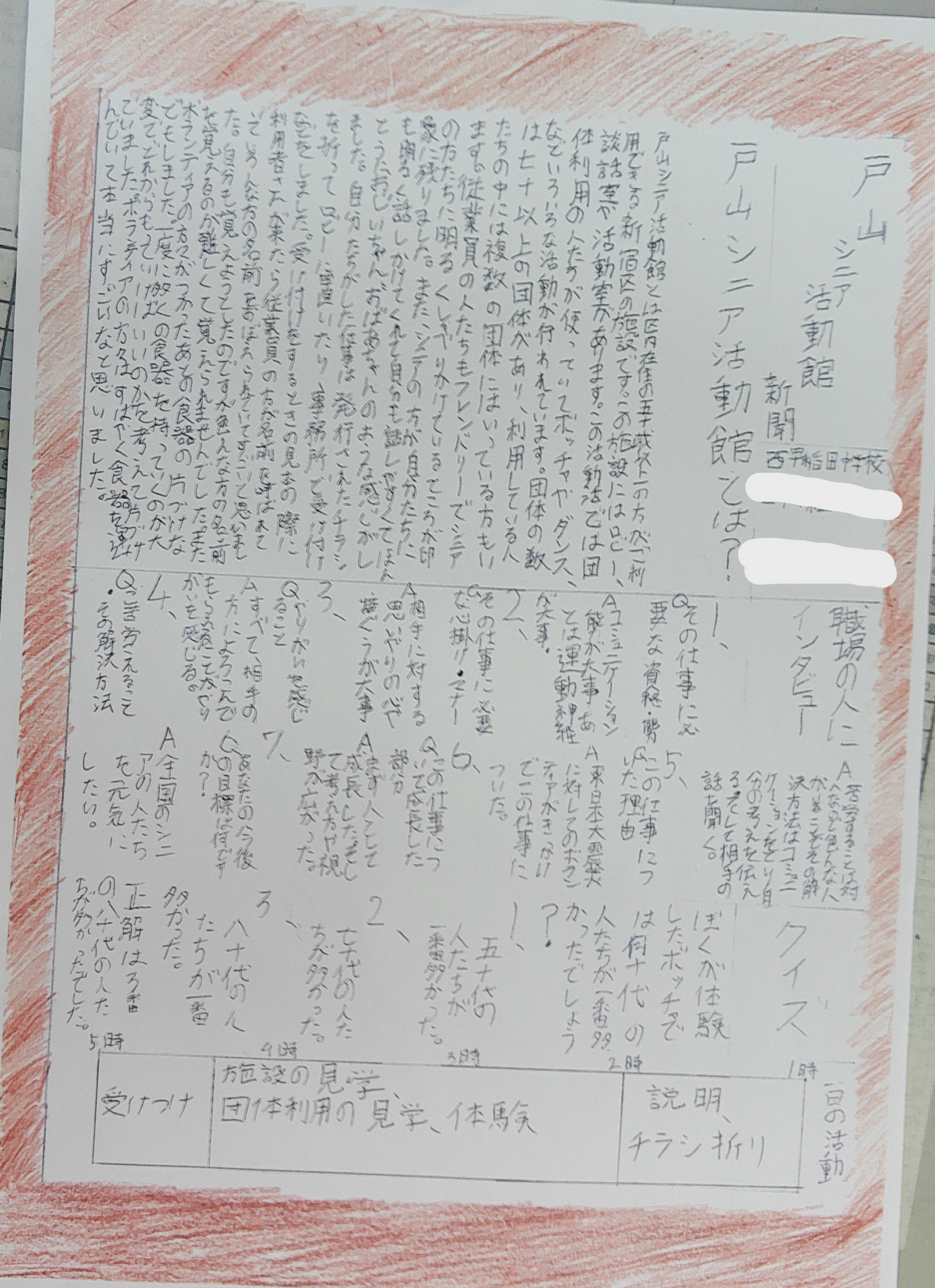 職場体験を行った西早稲田中学校の学生お二人から報告書が届きましたので、共有させていただきます。