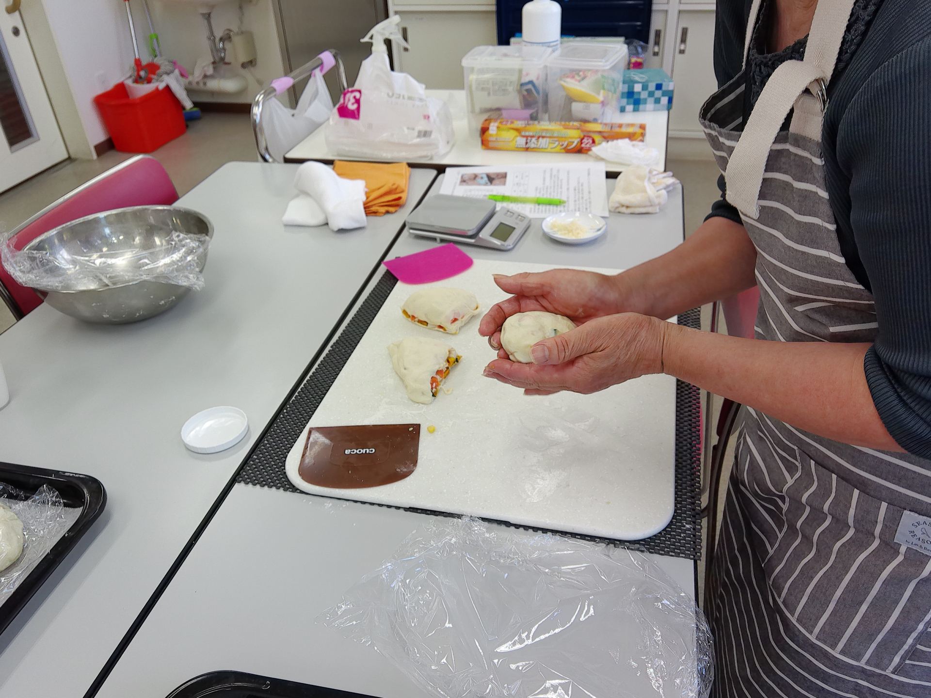 本日は秋野菜(カボチャ、ニンジン)使ったパンを作ります。先生がご用意したレシピを見ながら作っていきます。牛乳 砂糖、食塩を入れて混ぜた後、形を整えていきます。沢山野菜が入っていて美味しそう!