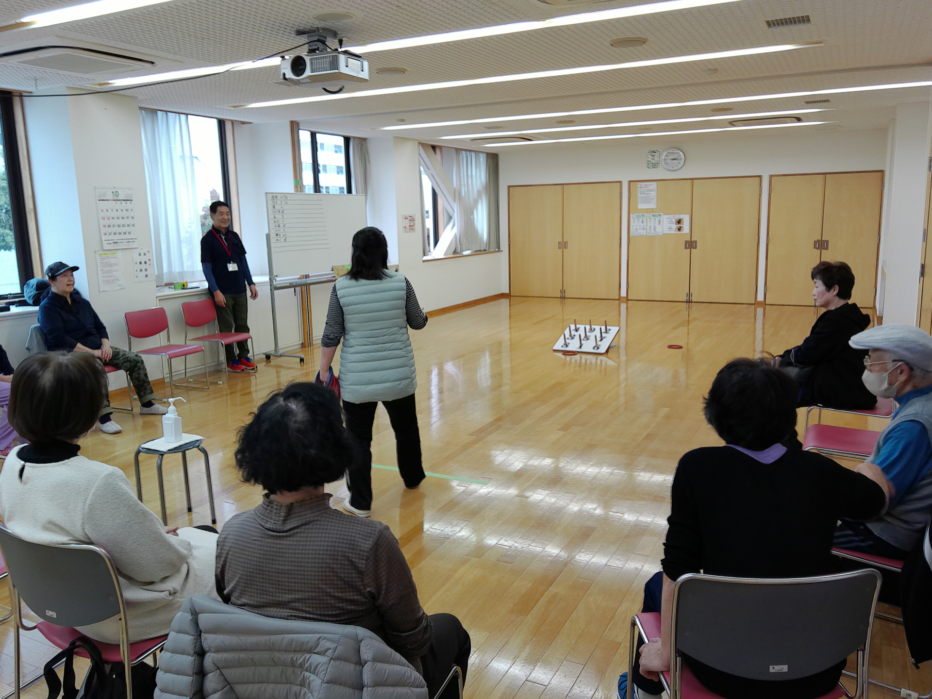 本日は輪投げサロンを行いました。 4メートル先の的を狙い、表示されている点数を合計して競い合います。