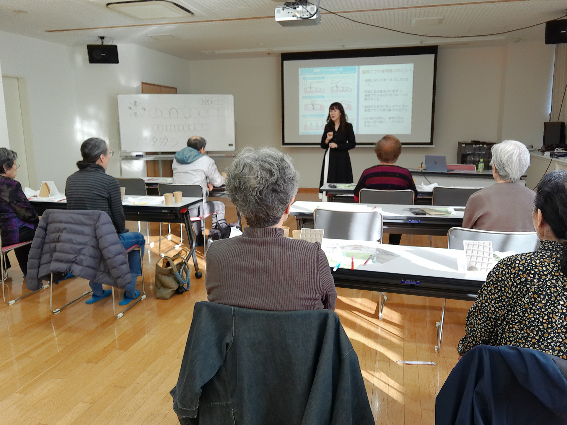 口腔衛生が専門の歯科衛生士の佐藤先生にから、インフルエンザ予防に欠かせない口腔ケアを学びました。