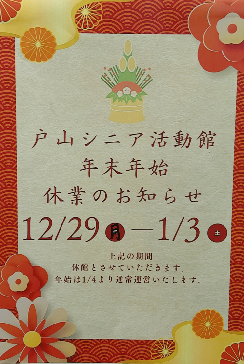 2026.01.04 お知らせ 明けましておめでとうございます Tweet シェアする 明けましておめでとうございます。 2026年もよろしくお願いいたします。 お正月仕様になりました!! 今年も皆さまに喜んでいただけるような講座や行事イベントを考えていきたいと思っております。 柏原 前の記事 2026.01.05 お知らせ シニアエクササイズ 次の記事 2025.12.28 お知らせ 今年最後の開館日となりました 一覧へ戻る