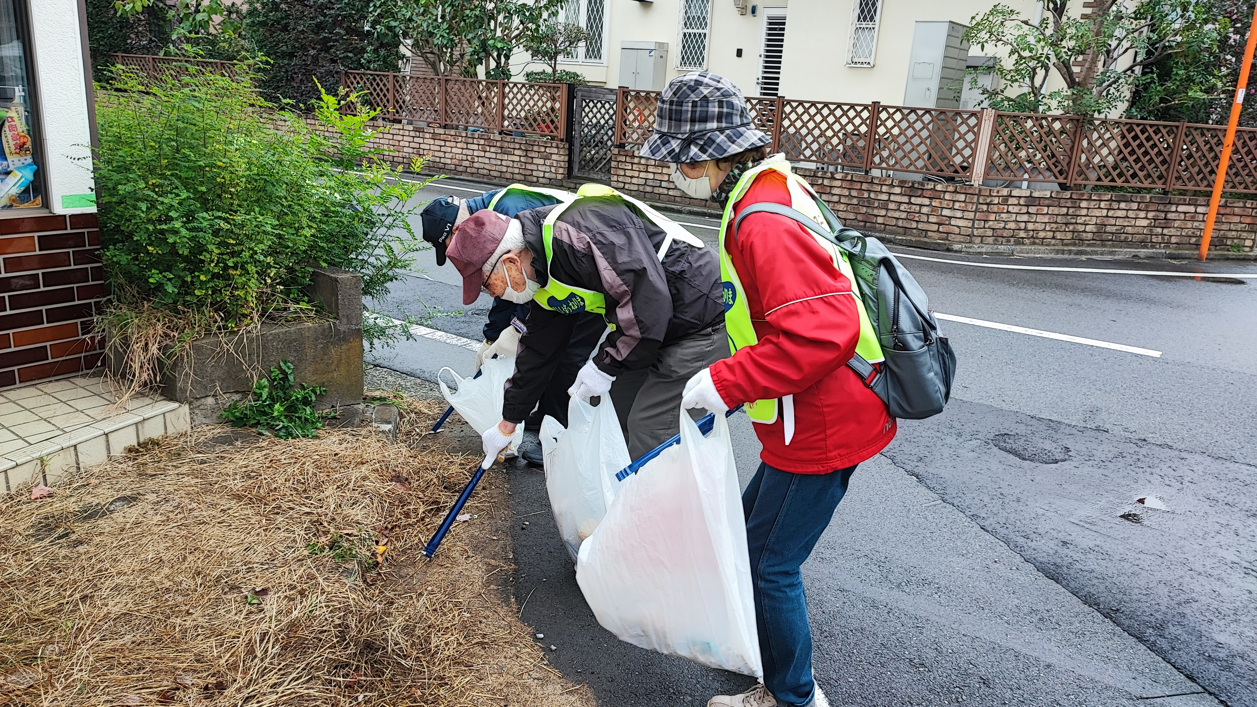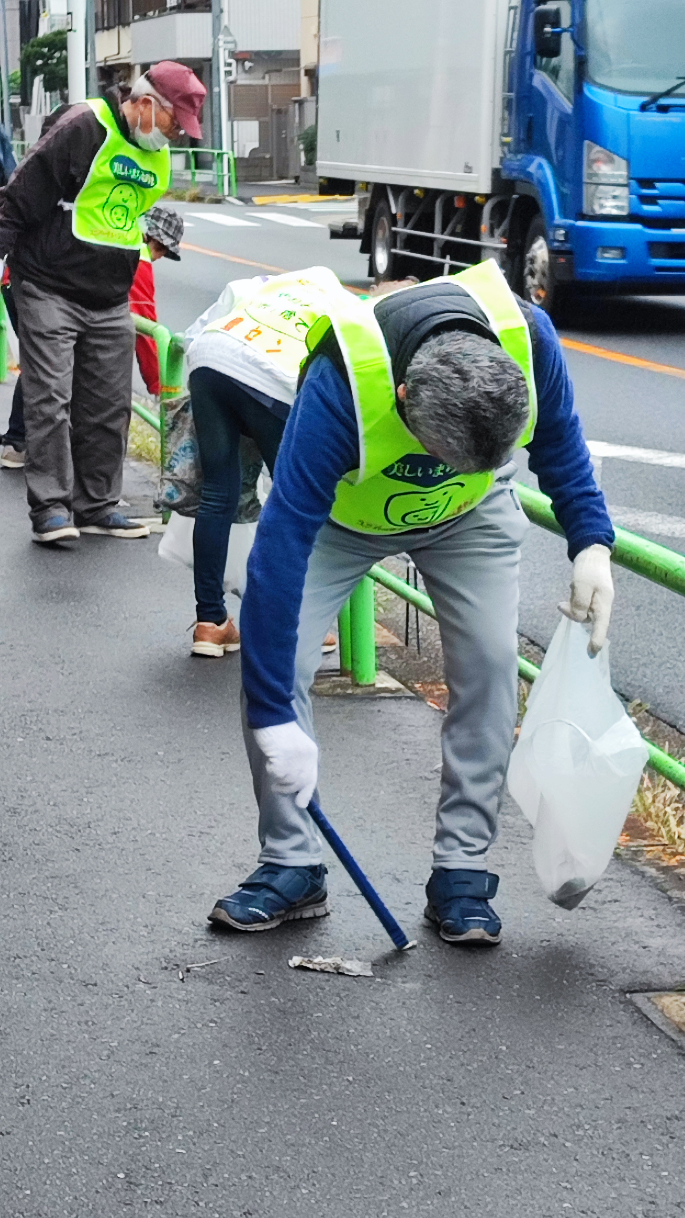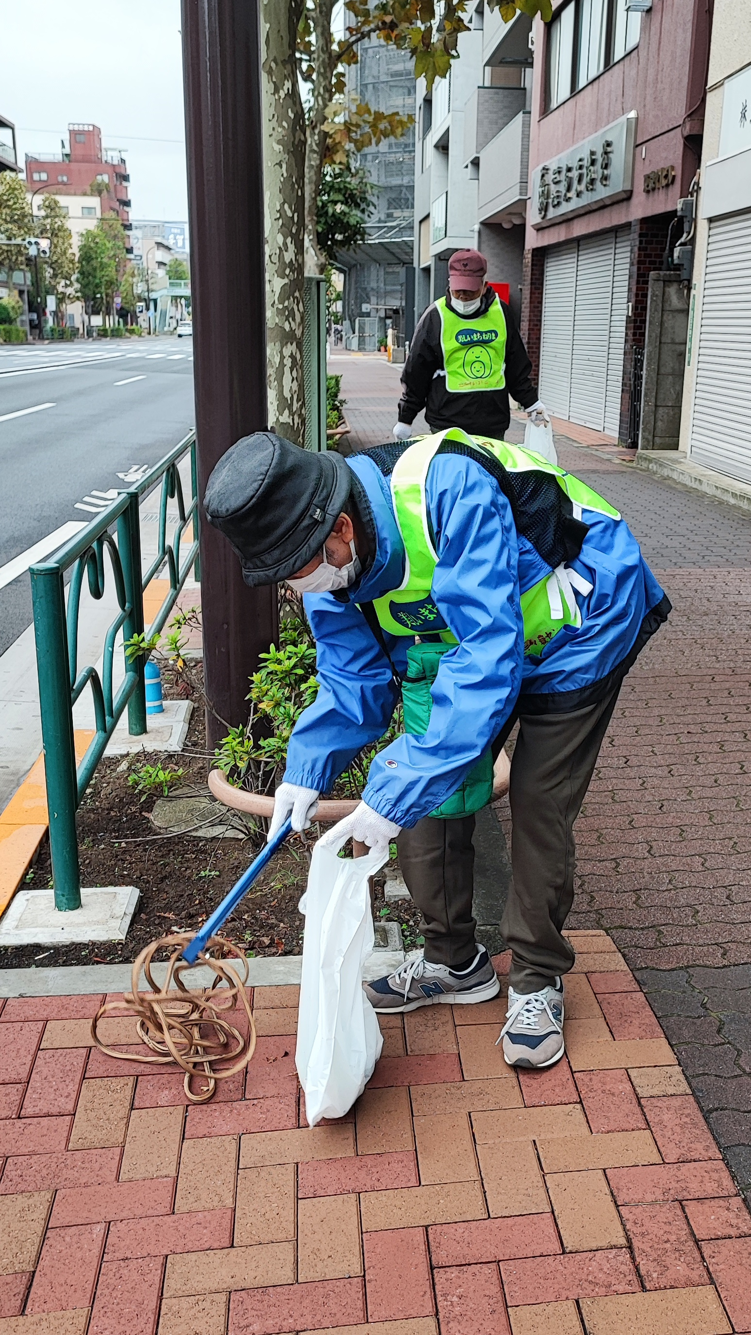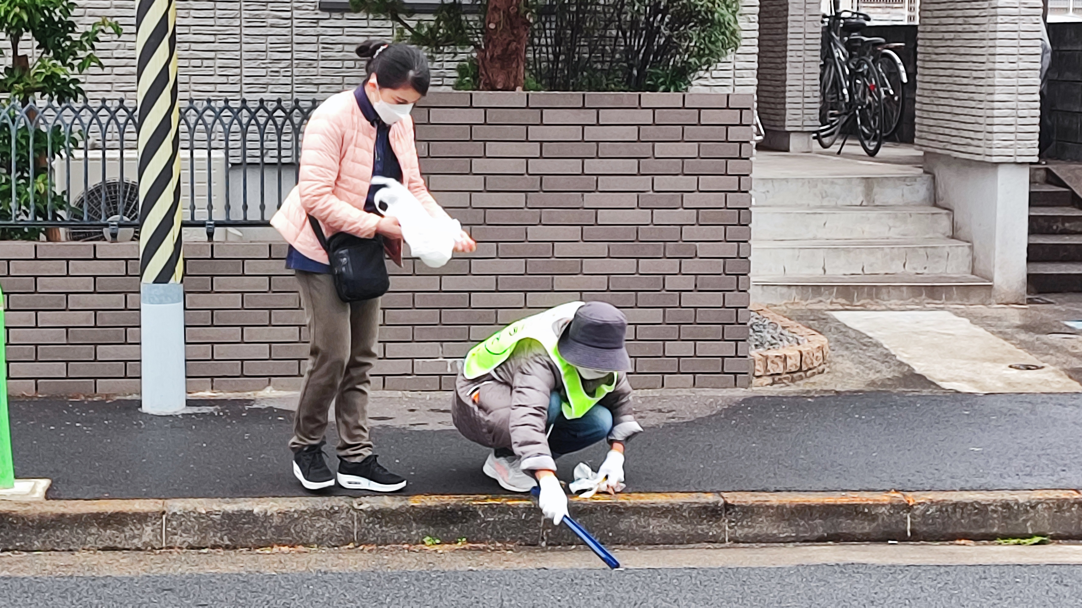 周囲に注意を払い、安全を守りながらの清掃活動を行いました。