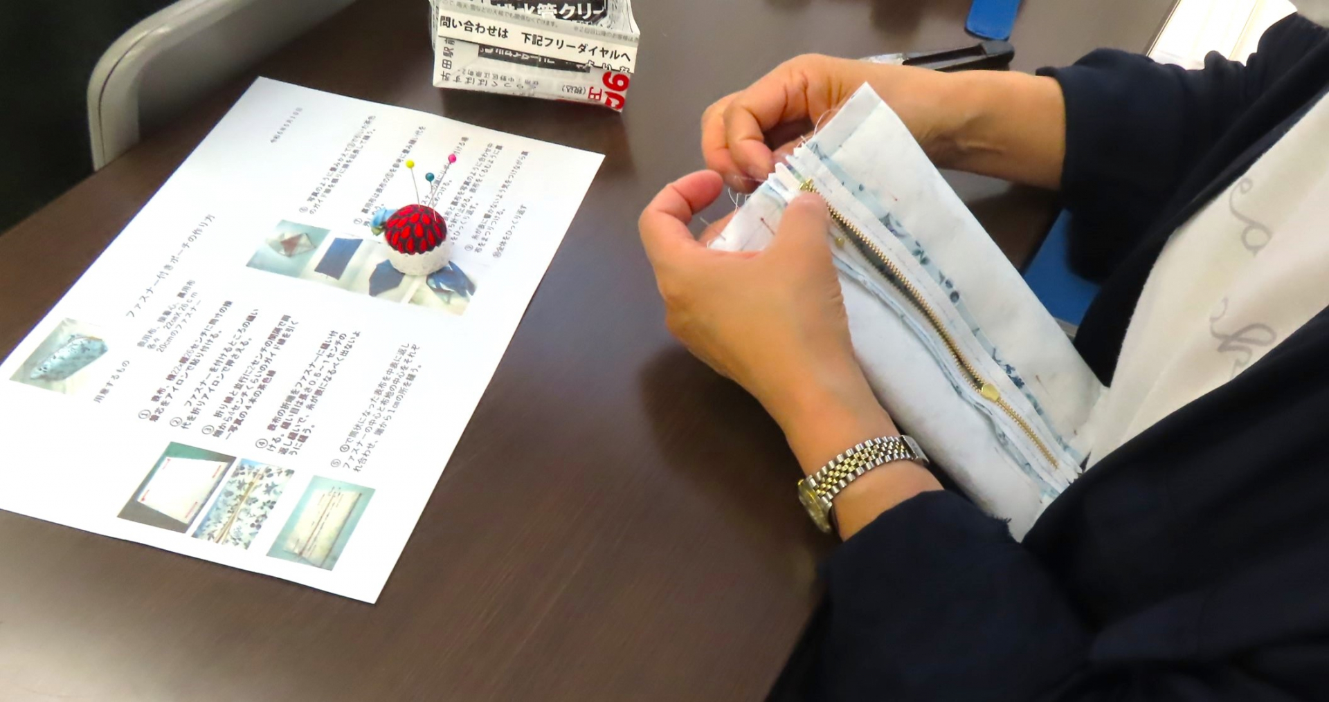 紫陽花会の講師3名さんが9名の参加者さまに付いてファスナー付きポーチを作りました。