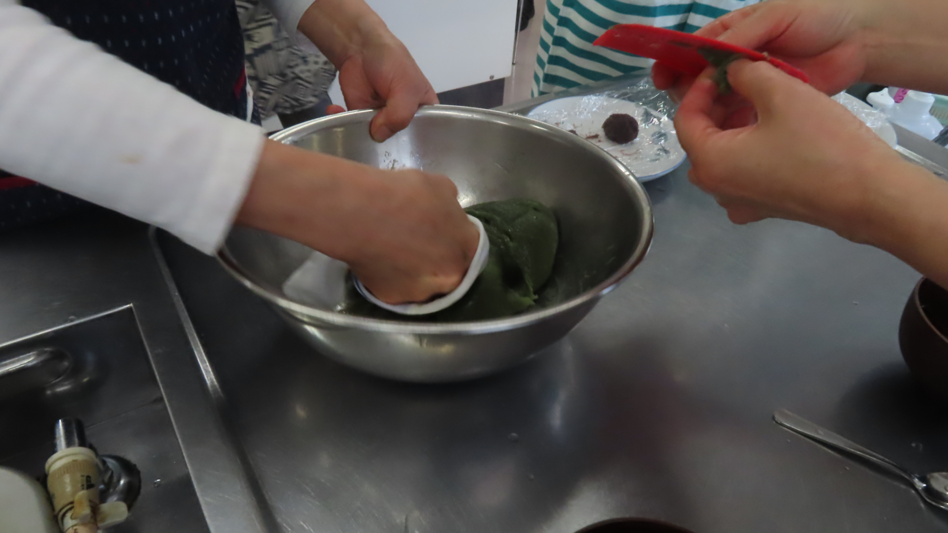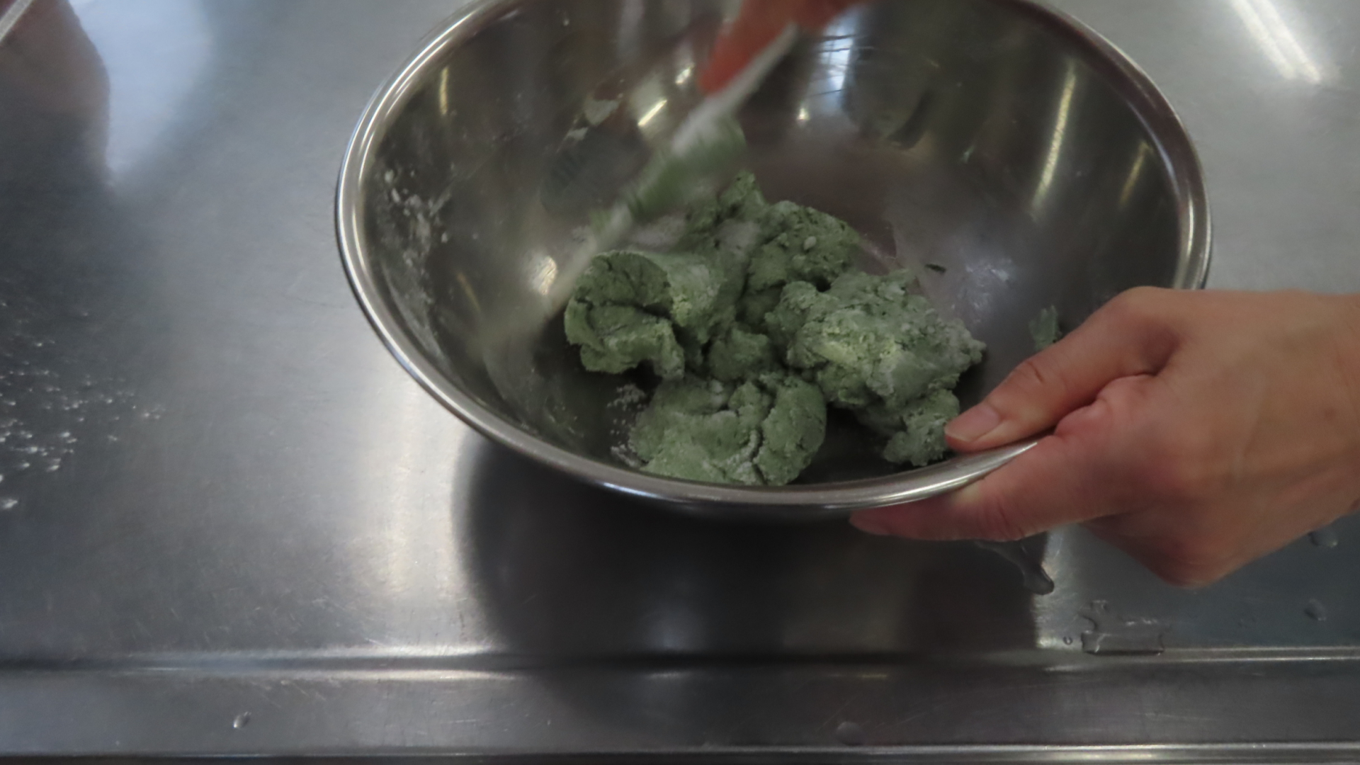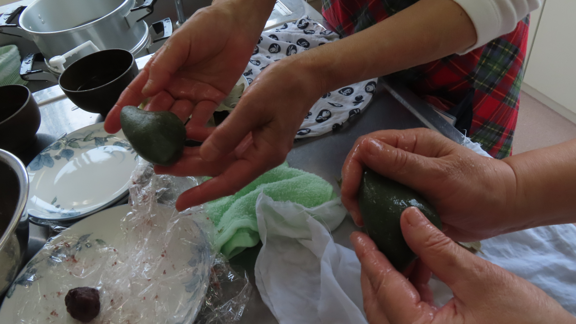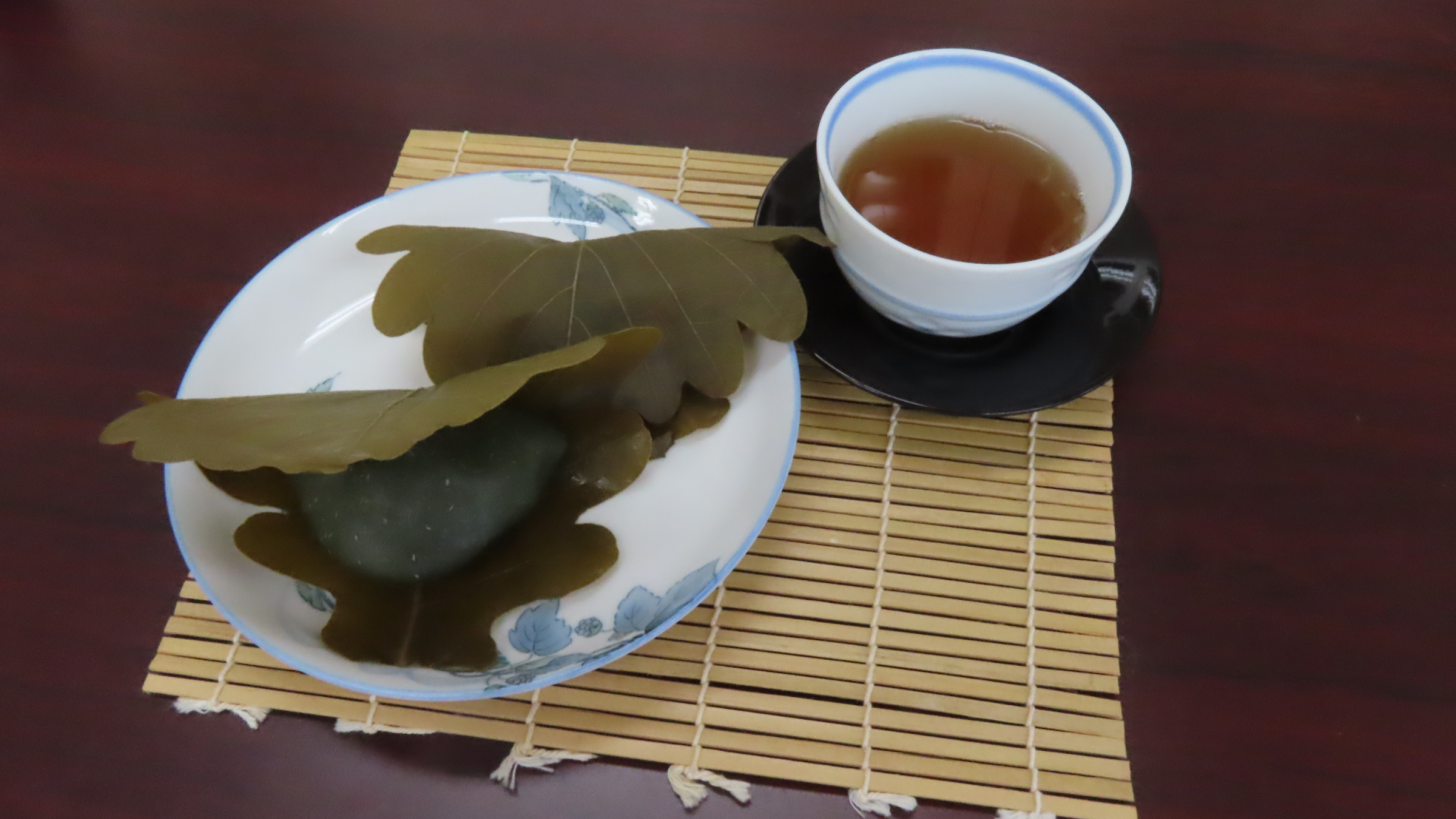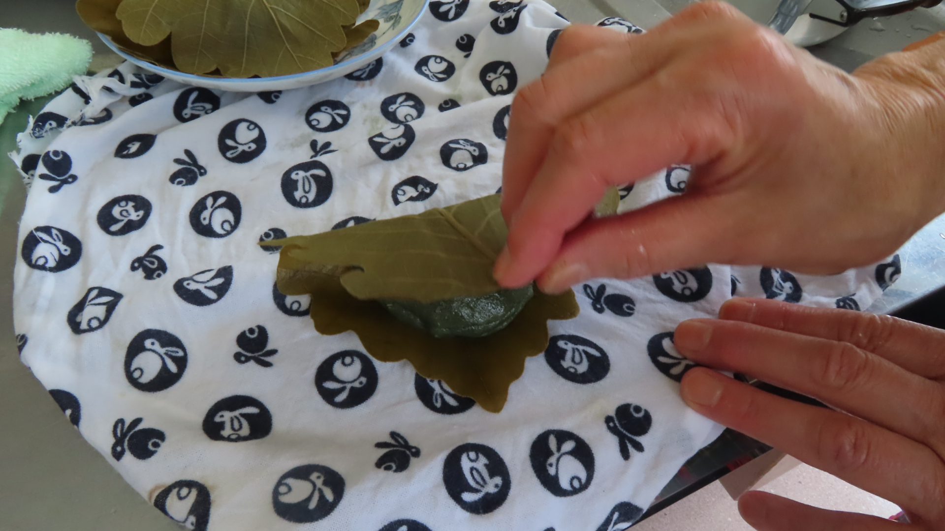 柏の葉にくるんだらヨモギの美味しい柏餅の出来上がりです。