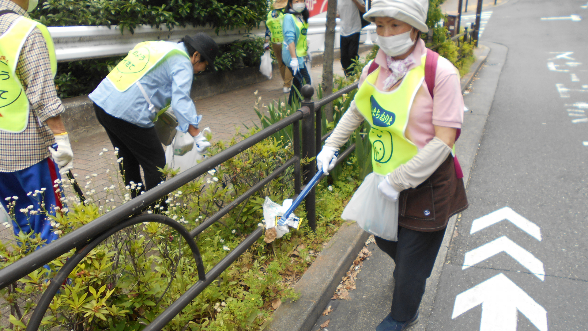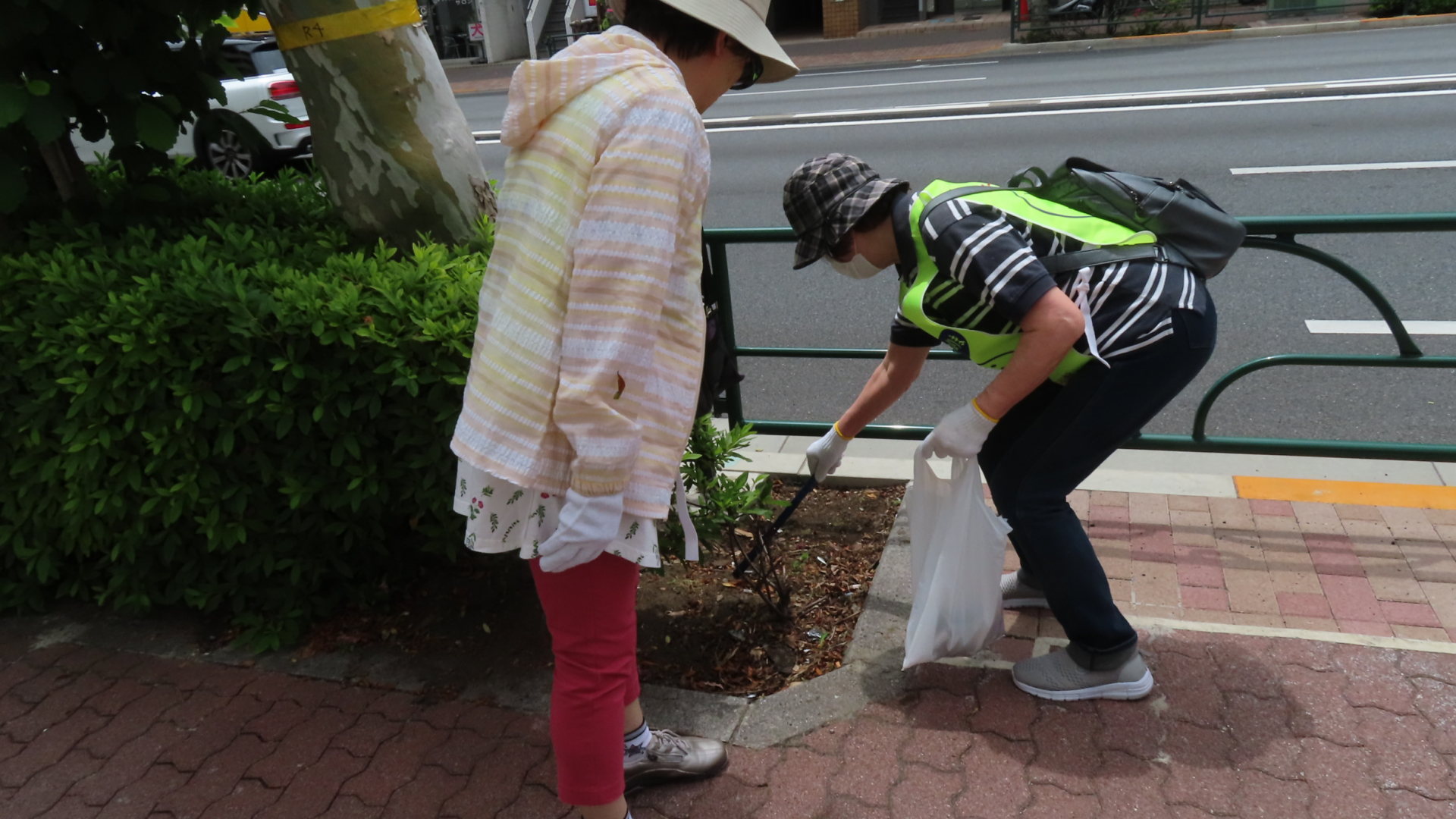 周囲に注意を払い、安全を守りながらの清掃活動を行いました。