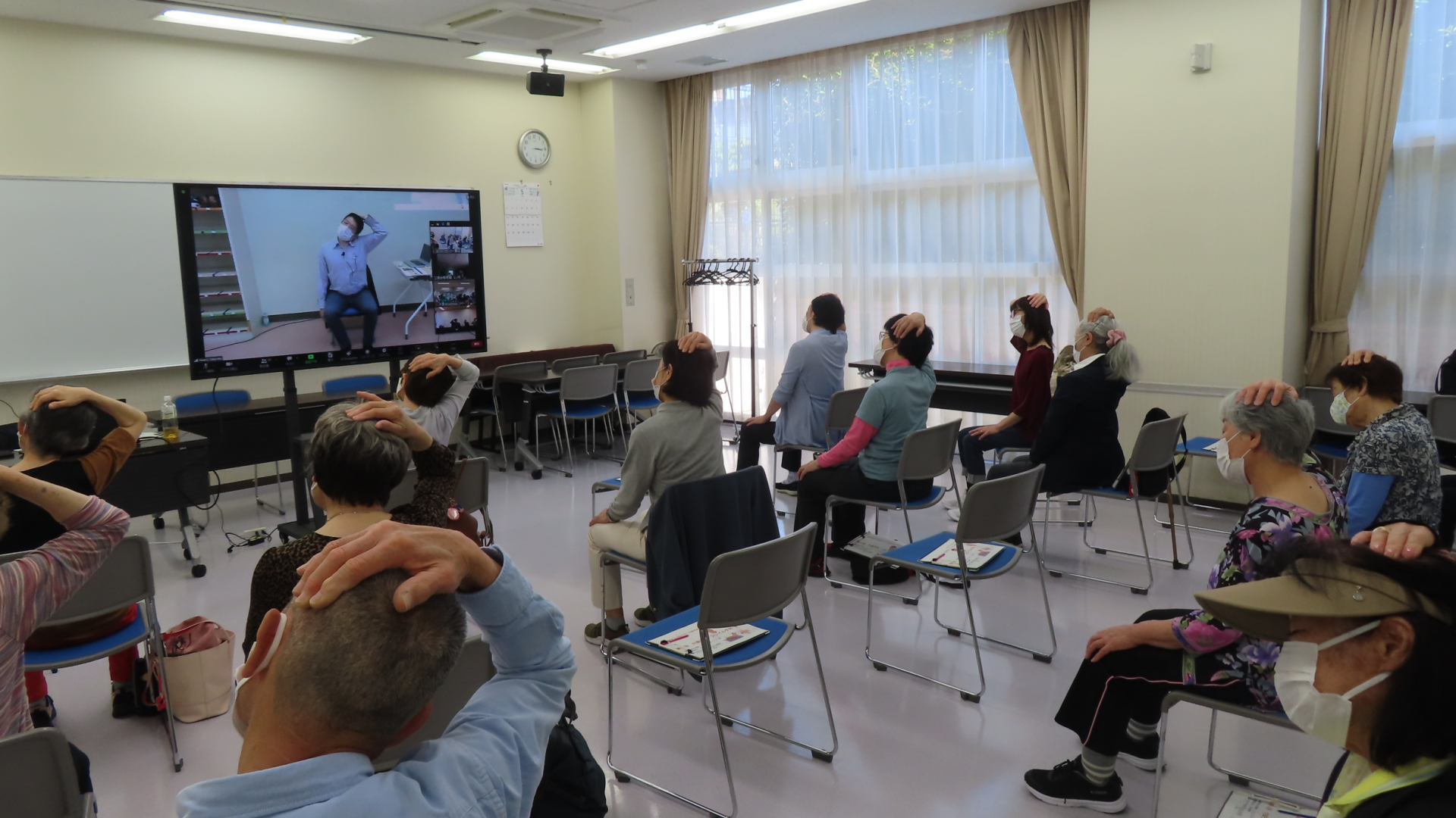 資料での説明が終わると、この講座では恒例となっているストレッチや筋トレなどの体操が始まりました。