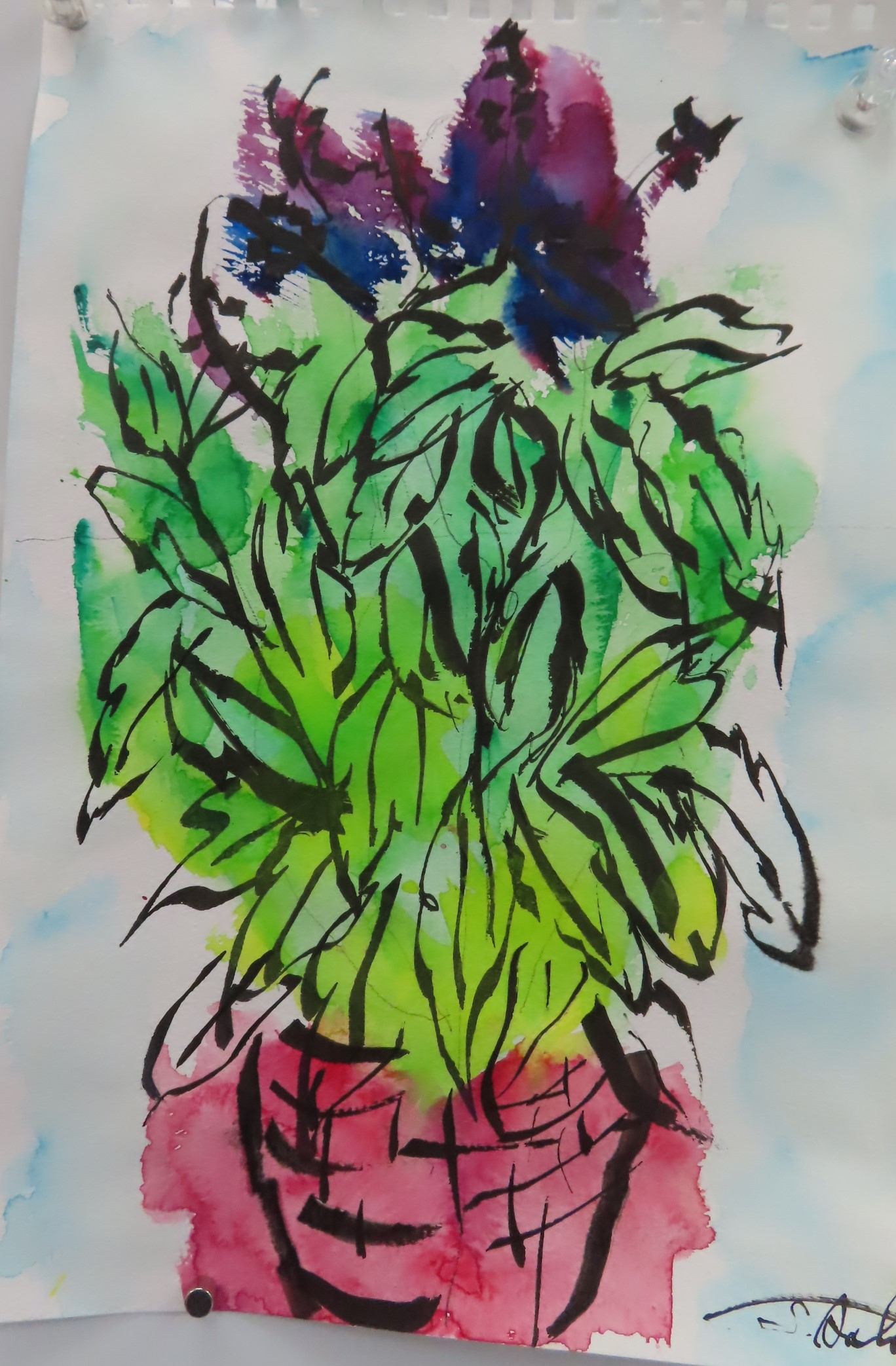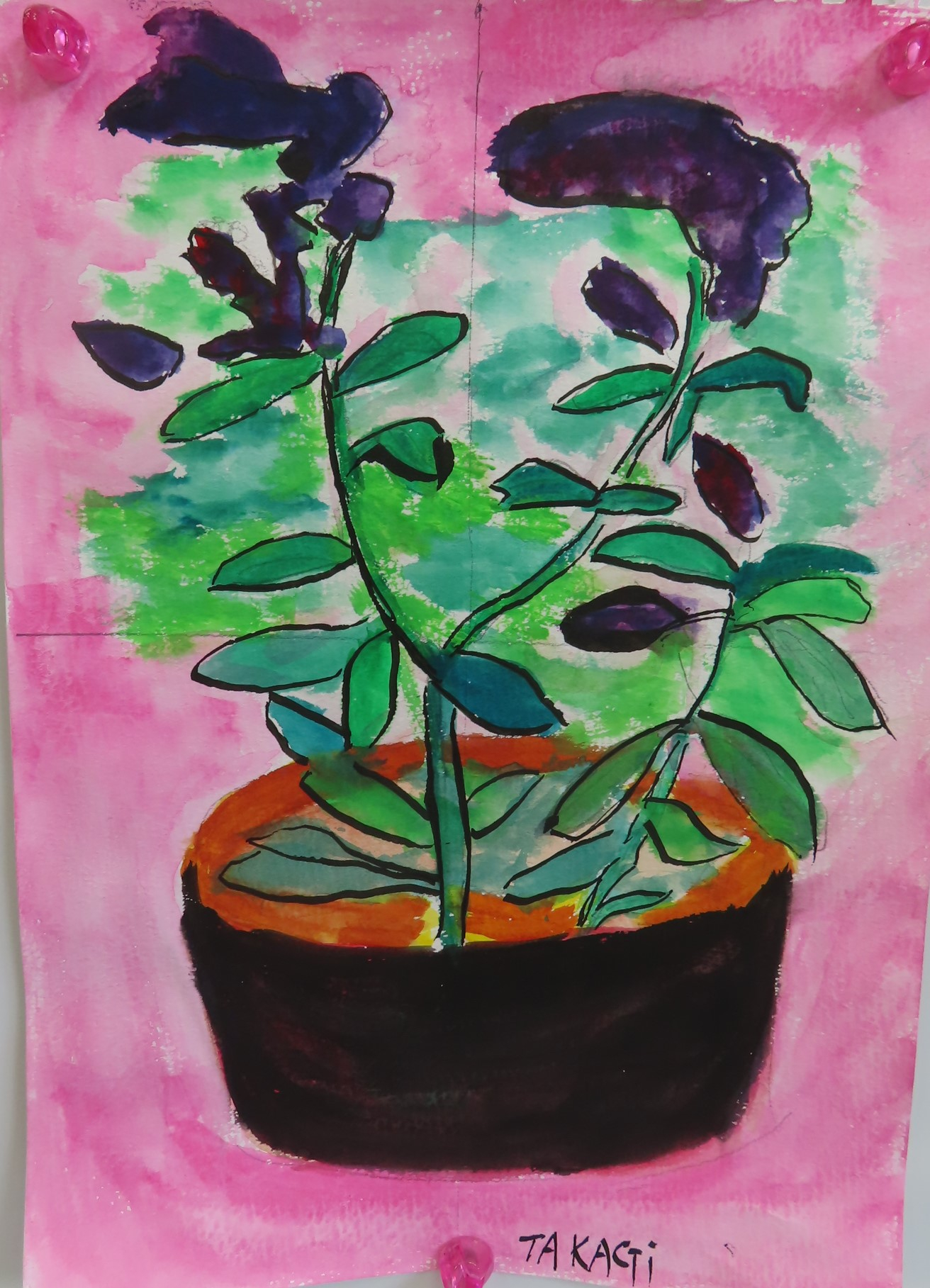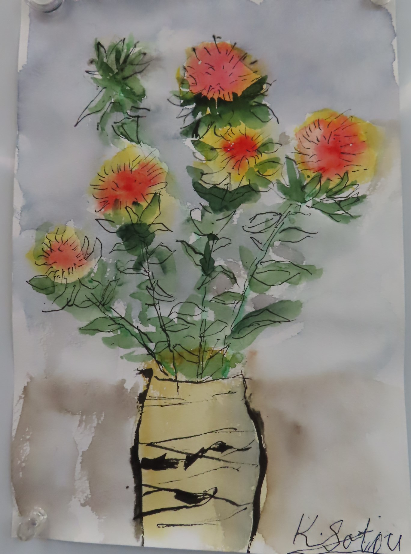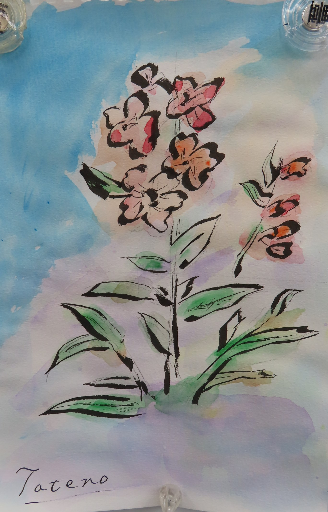 ↓草花の色合いと思い切った線が力強い表現で、健康な作品に感じます!