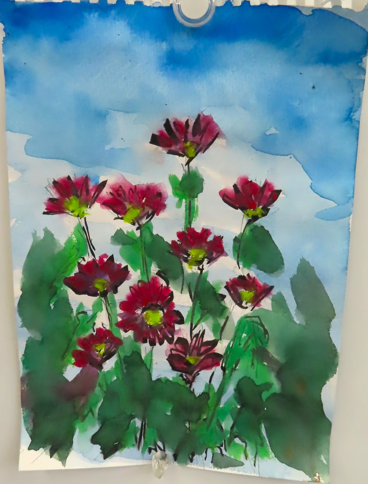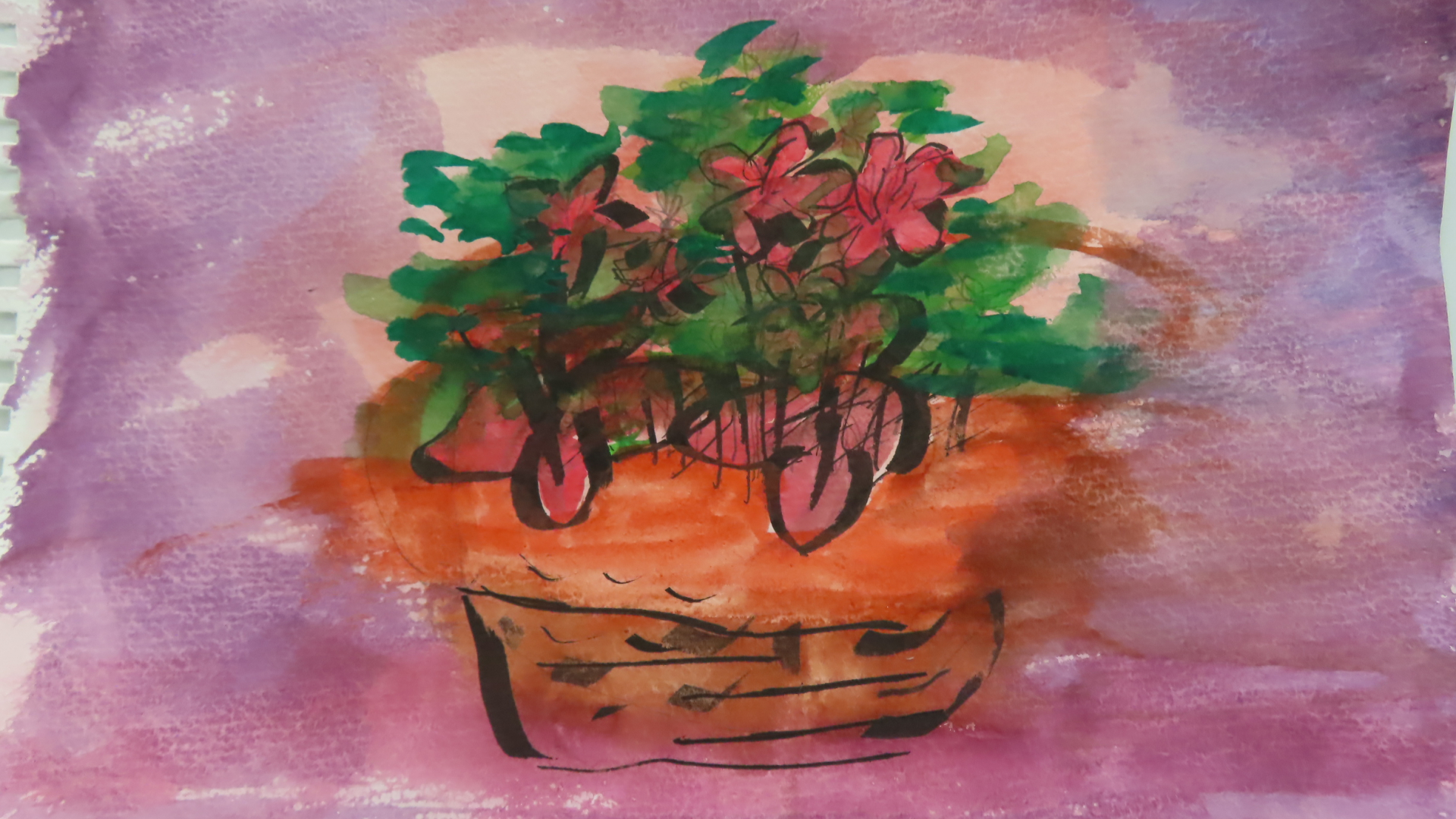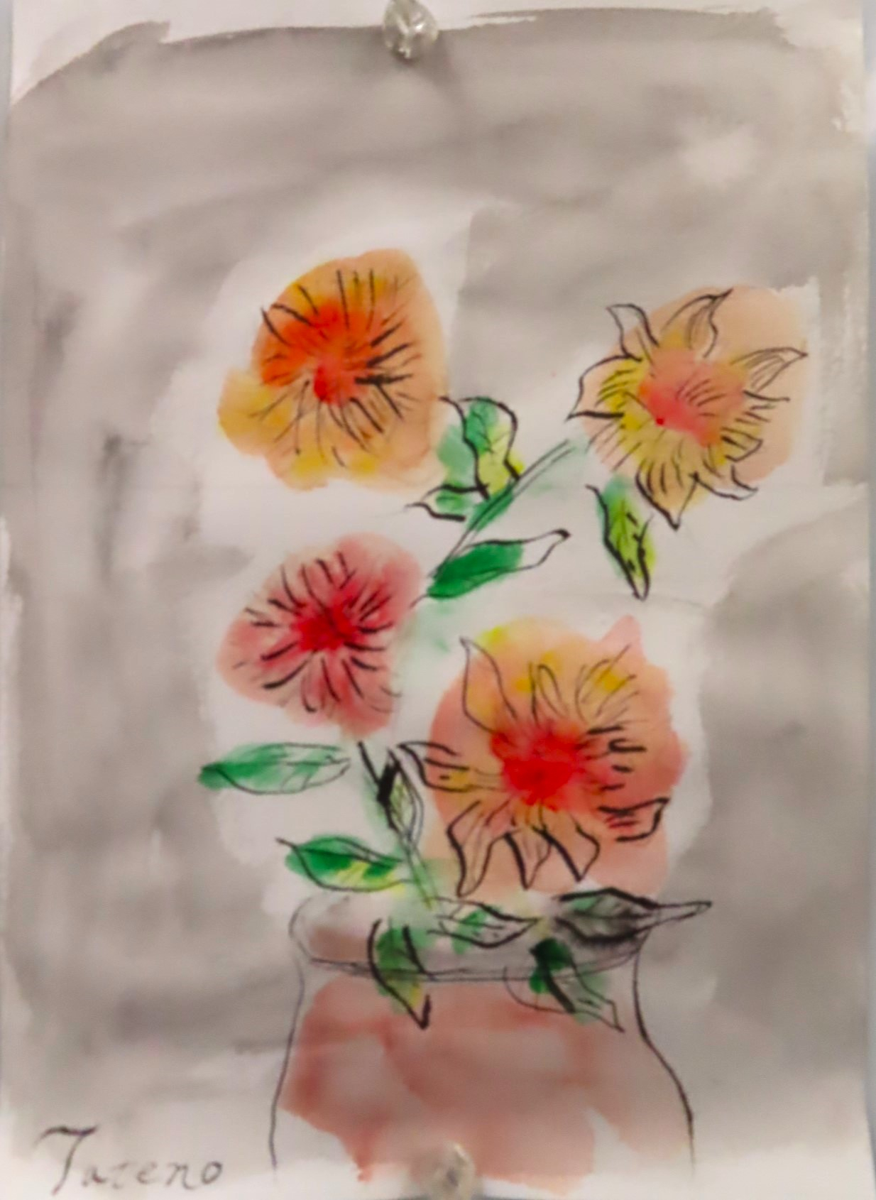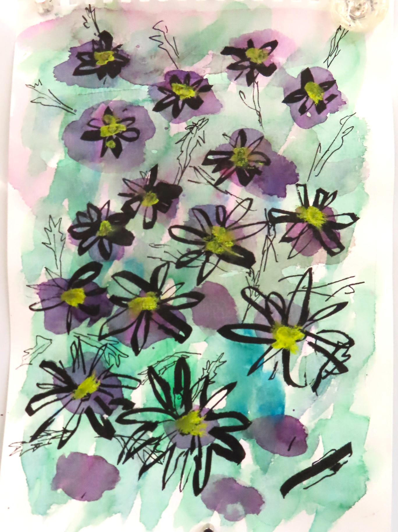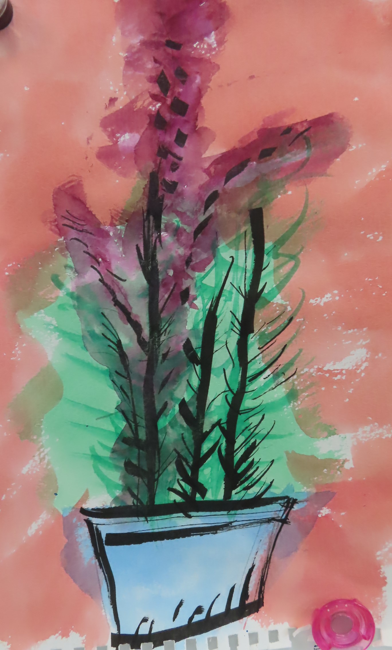 ↓草花の色合いと思い切った線が力強い表現で、健康な作品に感じます!