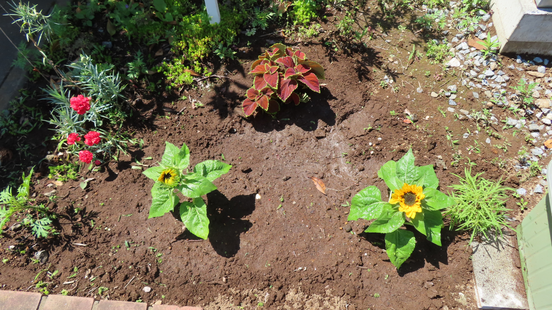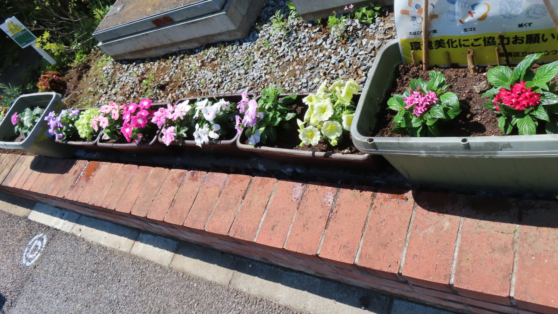 暑さに強い日日草・ひまわり等を植えました。