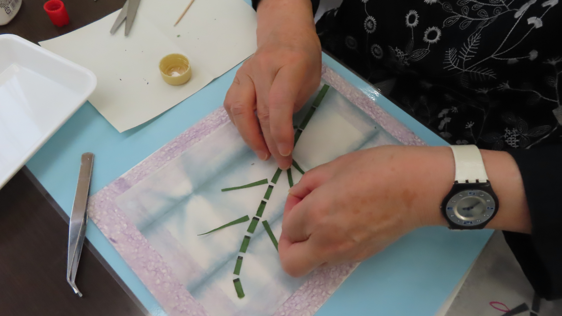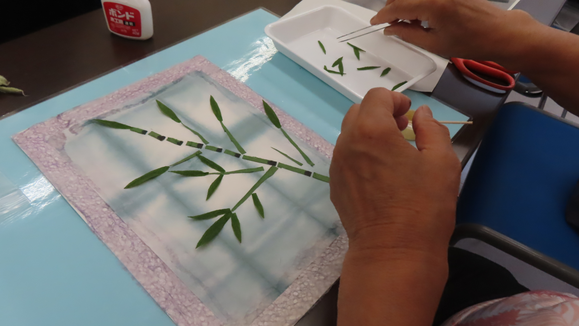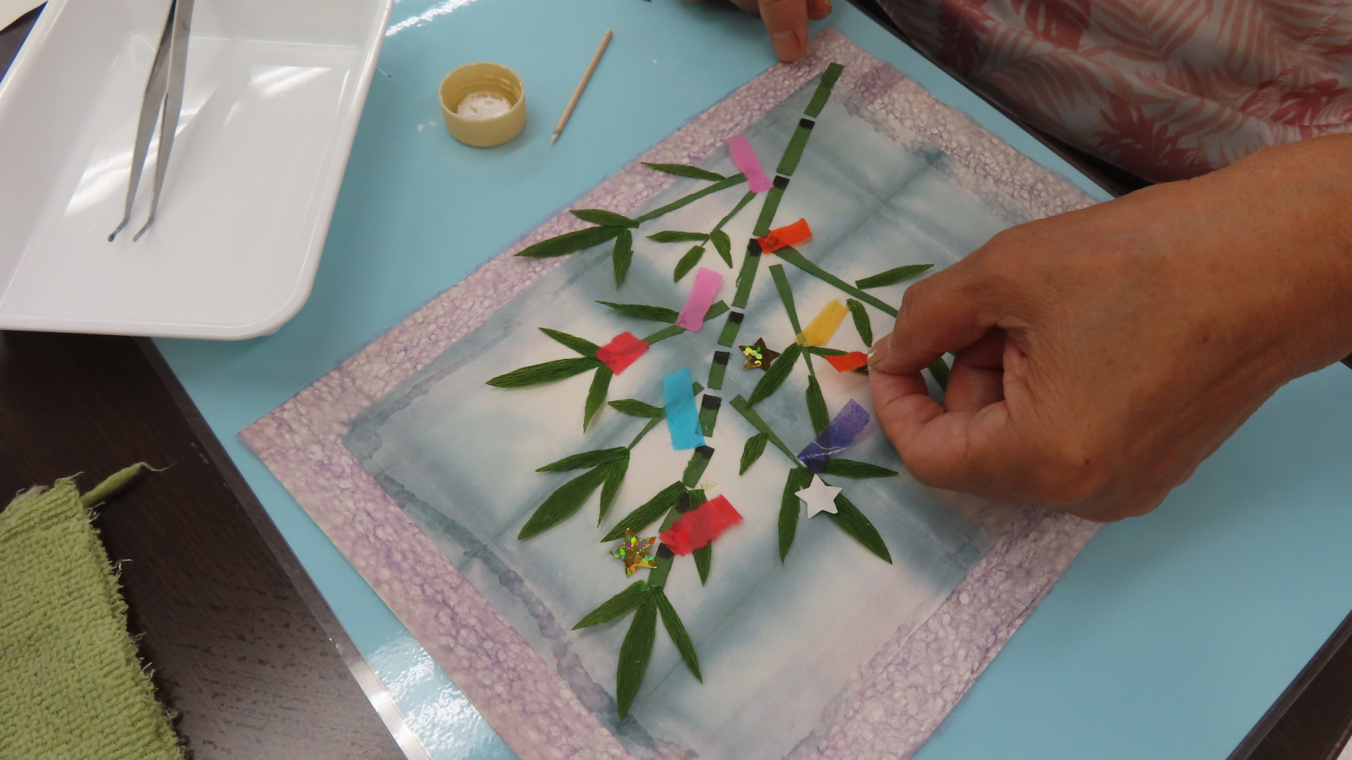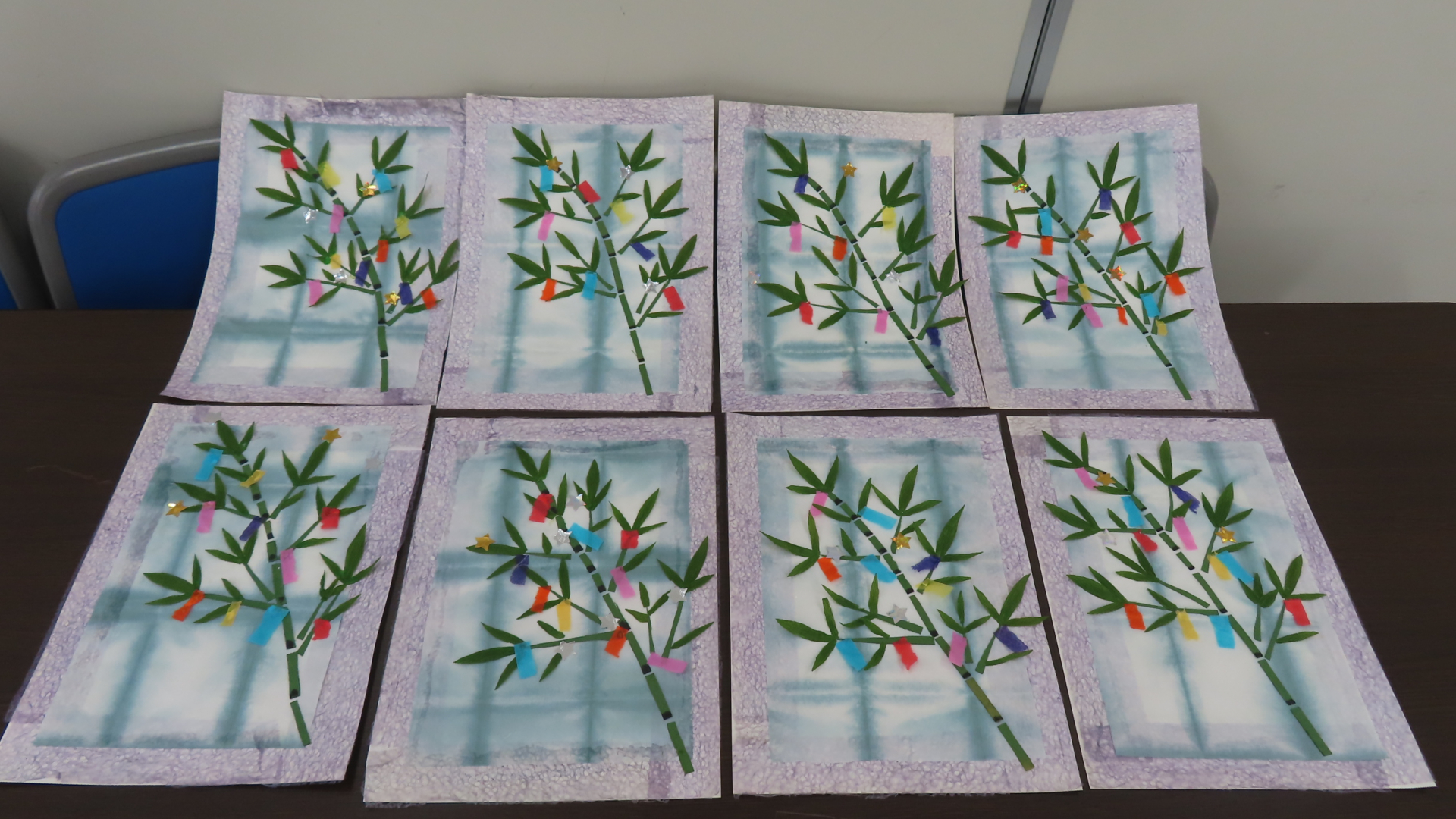 28日、切り貼り絵講座で七夕の貼り絵を作りました。