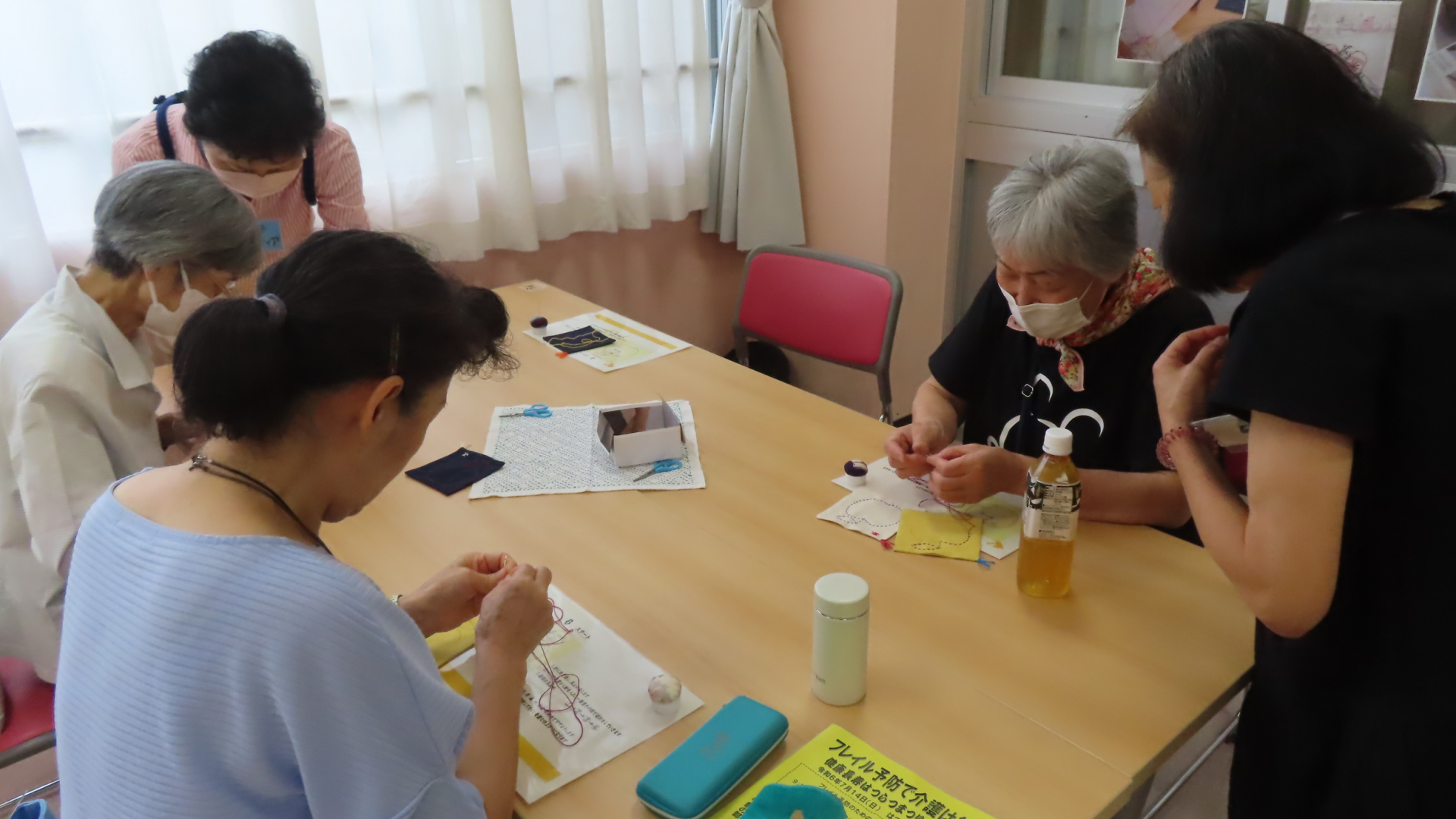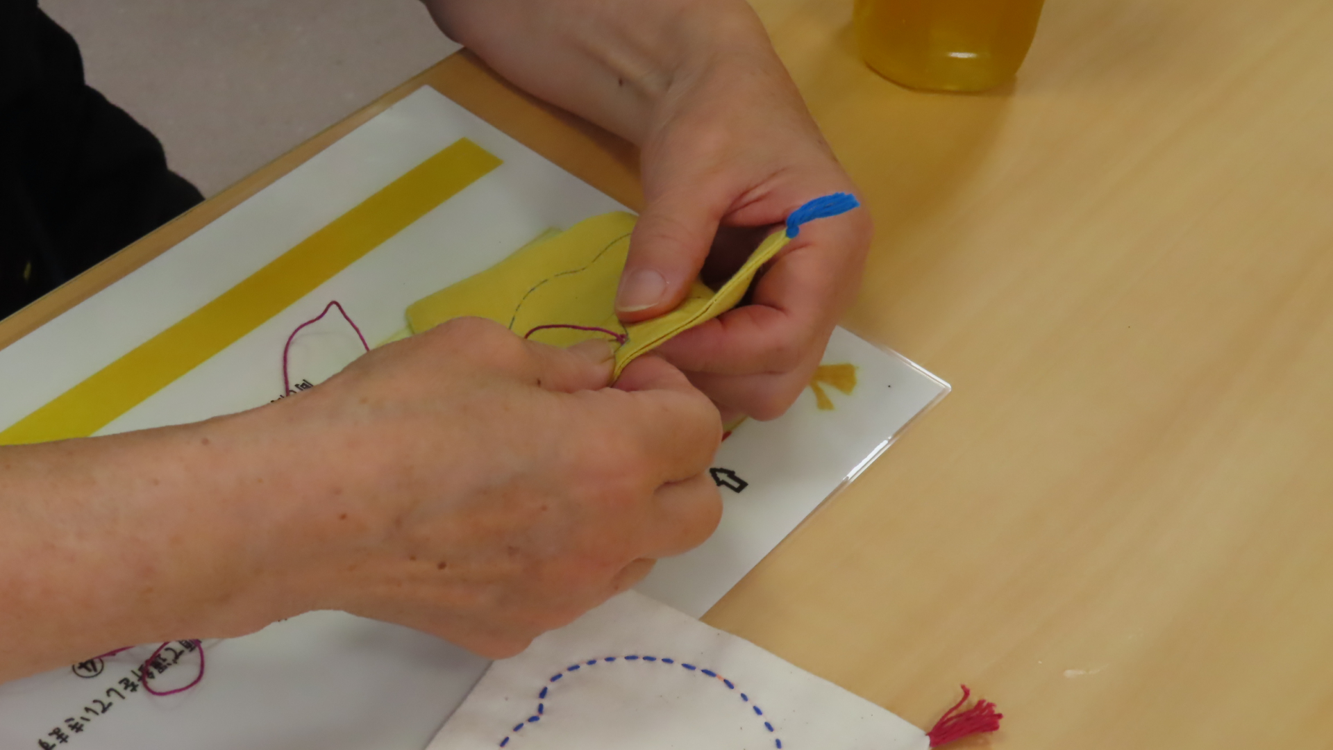 手縫いの手仕事が認知症予防に良い事は以前からも耳にしていました。図案を見ながら刺す事で、短期的な作業記憶・段取り・集中など、 前頭前野の機能をトレーニングすることで脳の活動を活発化し、認知機能の向上が期待できるとされています。