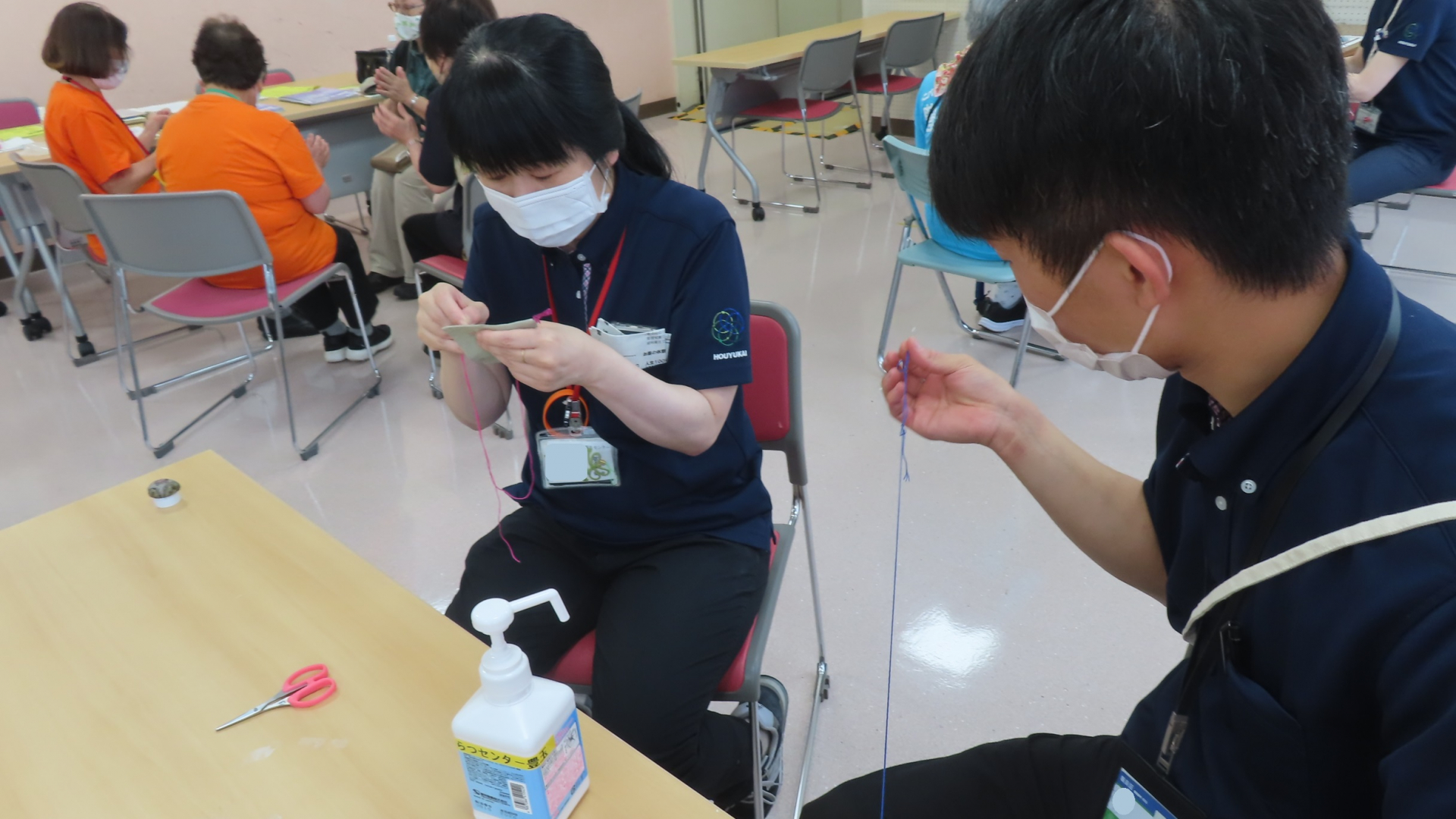 応援に来て下さった職員さんも頑張ってチクチク・・「僕もうまいでしょ!」と男性職員もノリノリ~!(^^)!です。