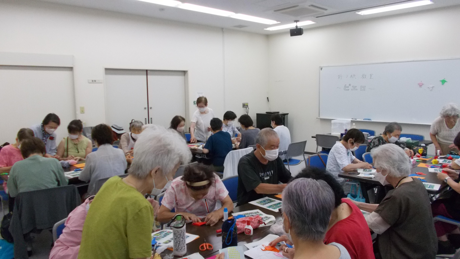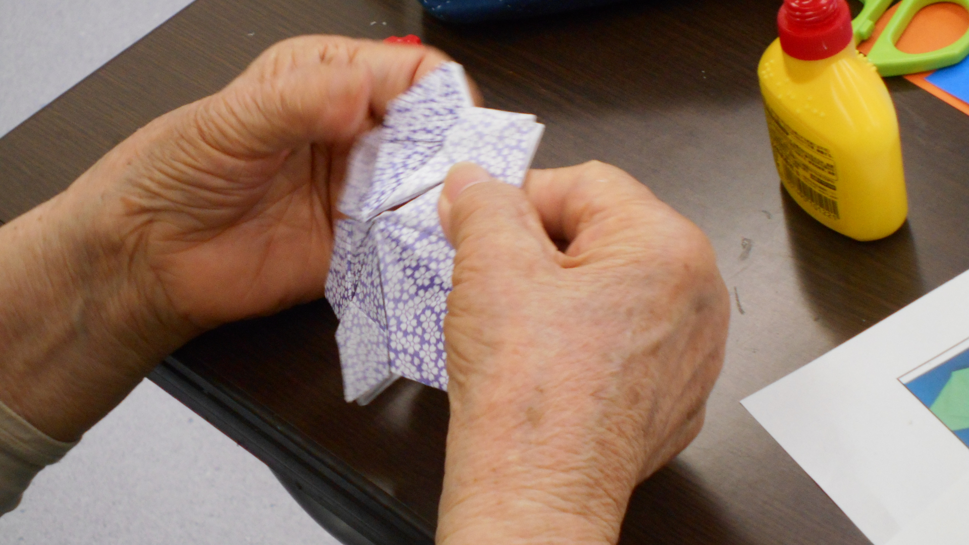 実は今回、余った時間で傘もおまけに作りました。小さい折り紙7枚を貼り合わせます。