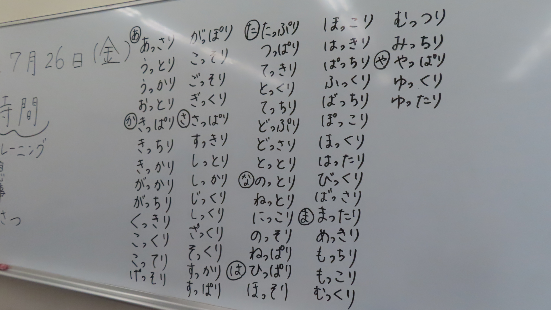 脳トレは「□っ〇り」に当てはまる言葉を考えよう!というものでした。