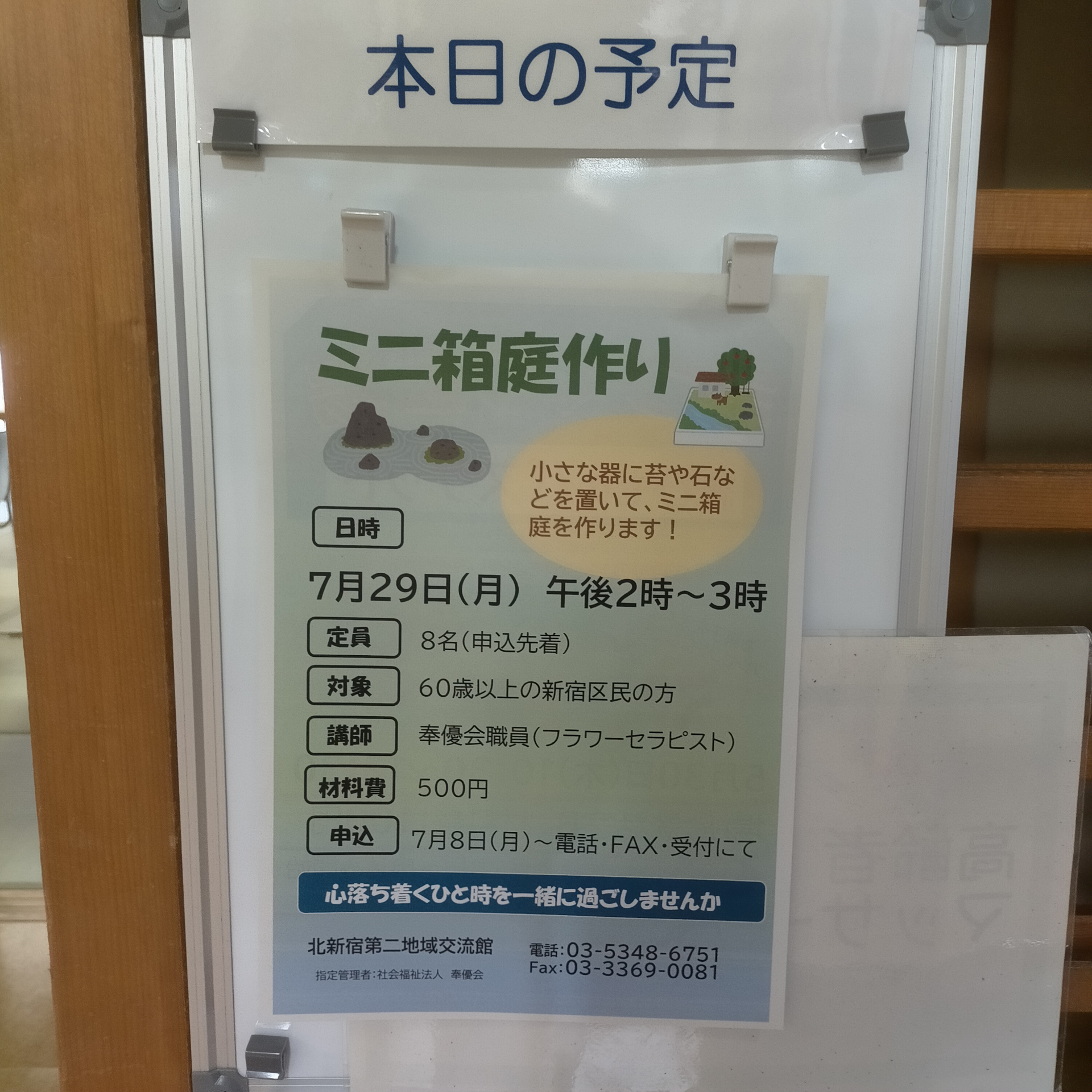 「ミニ箱庭講座」の出張講師として北新宿第二地域交流館へ行ってきました。