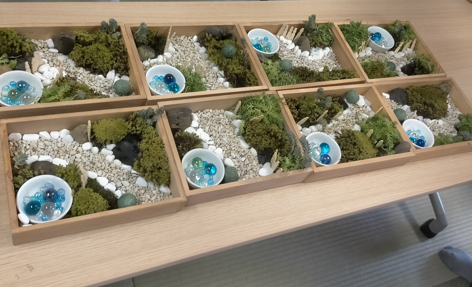 参加者の皆さんの個性の出たミニ箱庭の完成です。