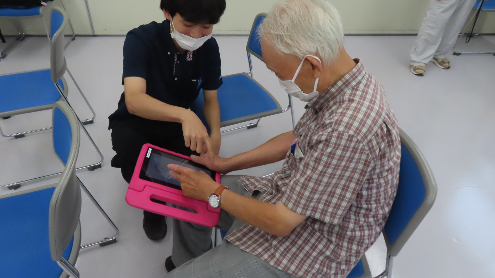 今回の健康チェックでは、基本的なメニューに加えてiPadを用いた"脳トレゲーム"を行いました!