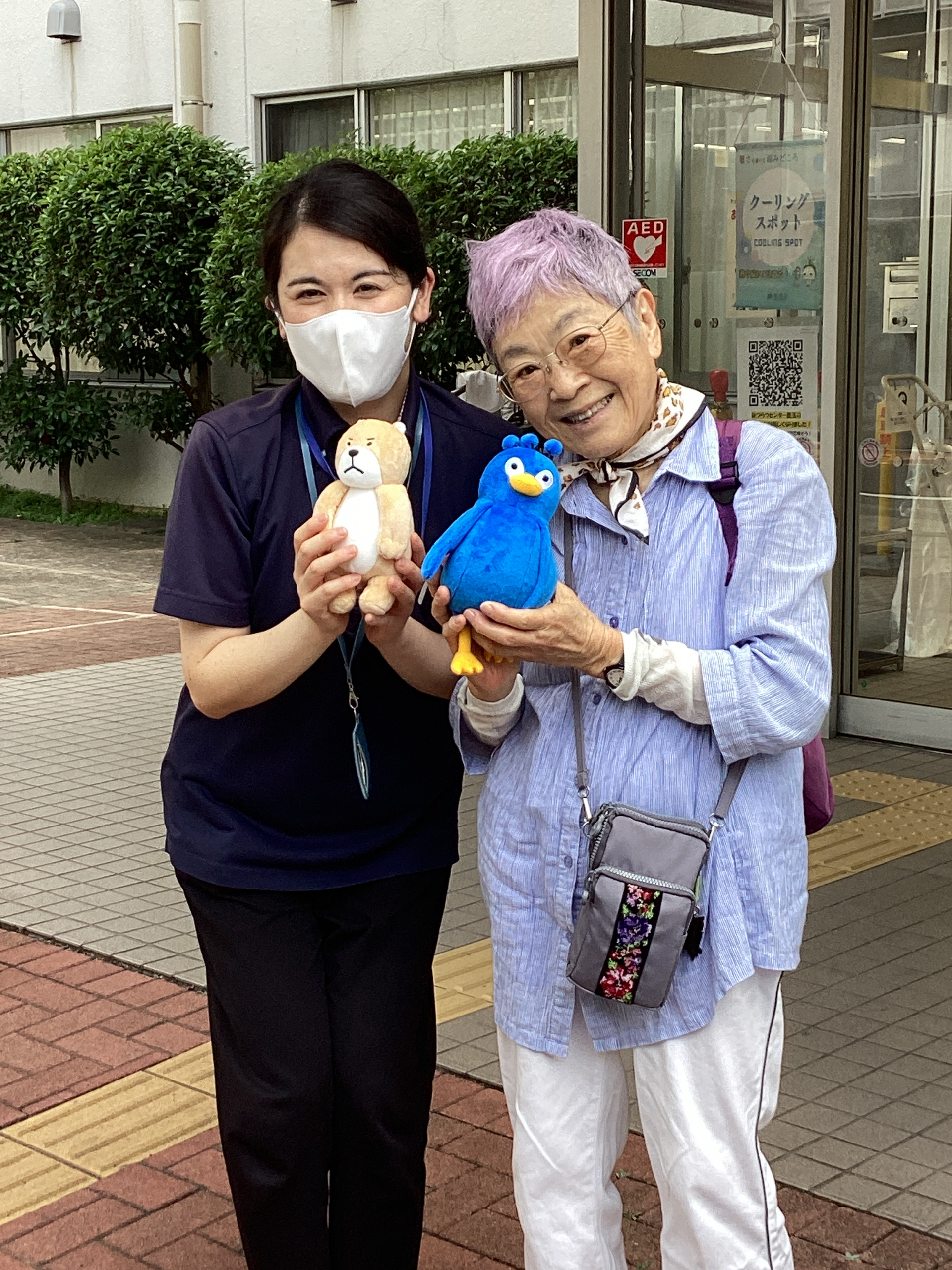 2024年8月14日、練馬区立はつらつセンター豊玉に奉優会オリジナルキャラクターしば先輩とクジャペン1号がやってきました!!