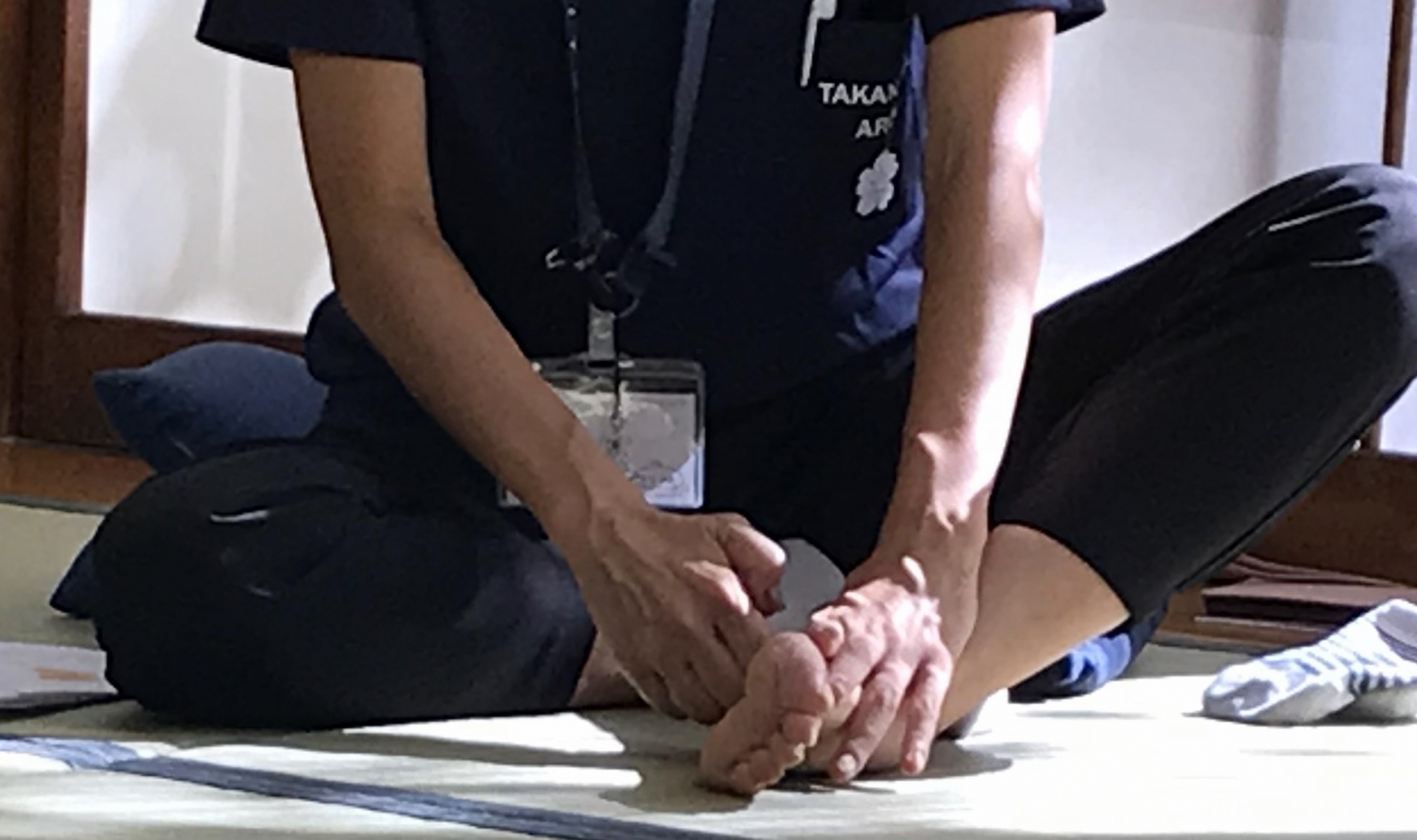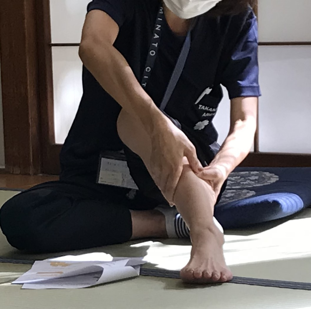 ↓こちらは鍼灸師の先生が足指ほぐしセルフケアの様子です。