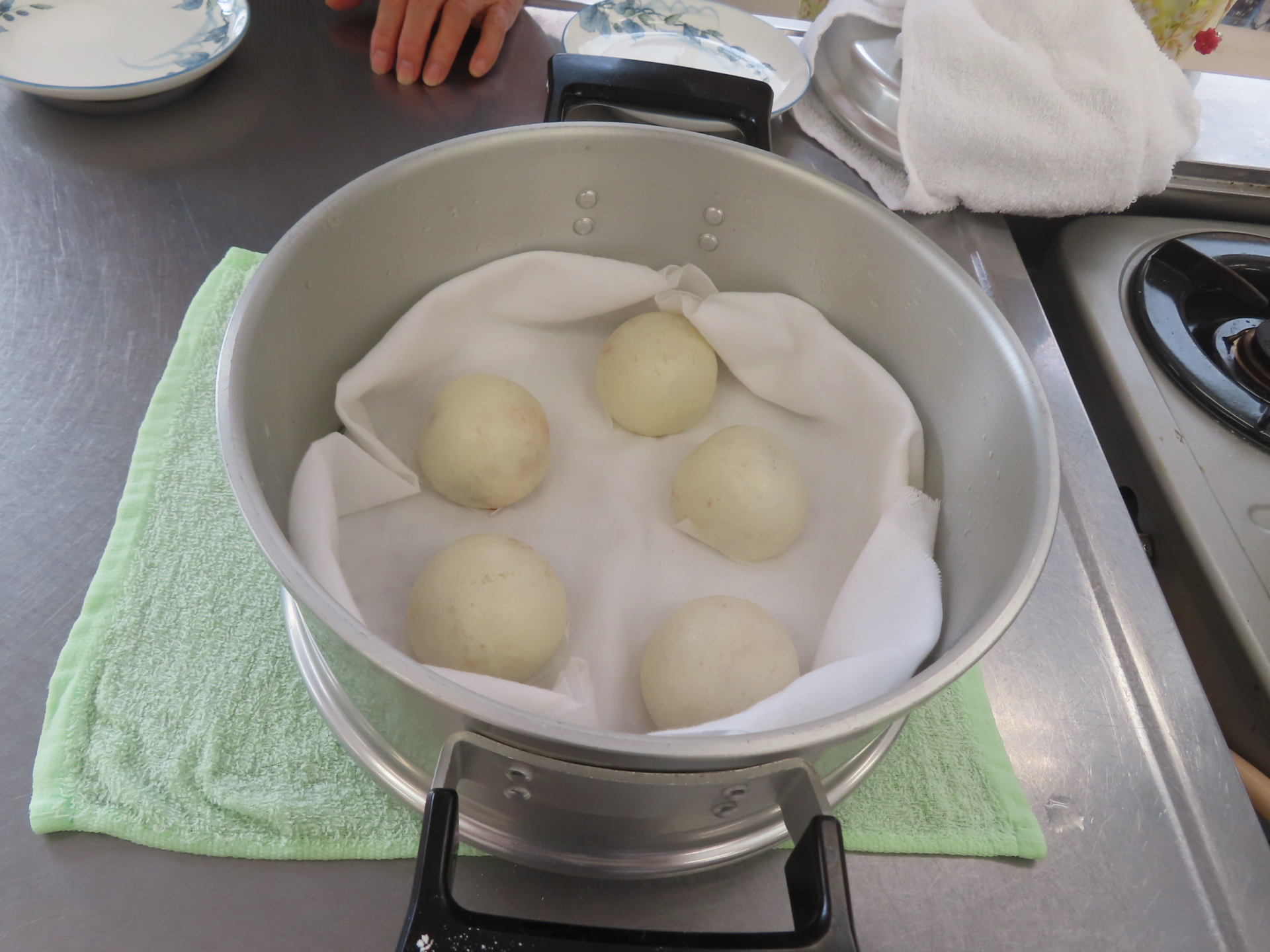 強火で一気に蒸し上げて、美味しい栗蒸し饅頭の出来上がりです。